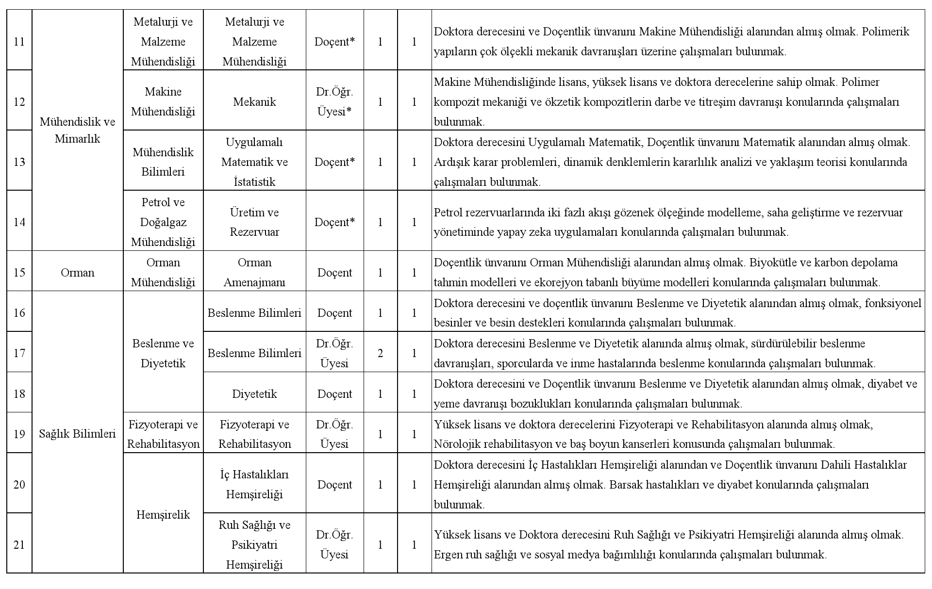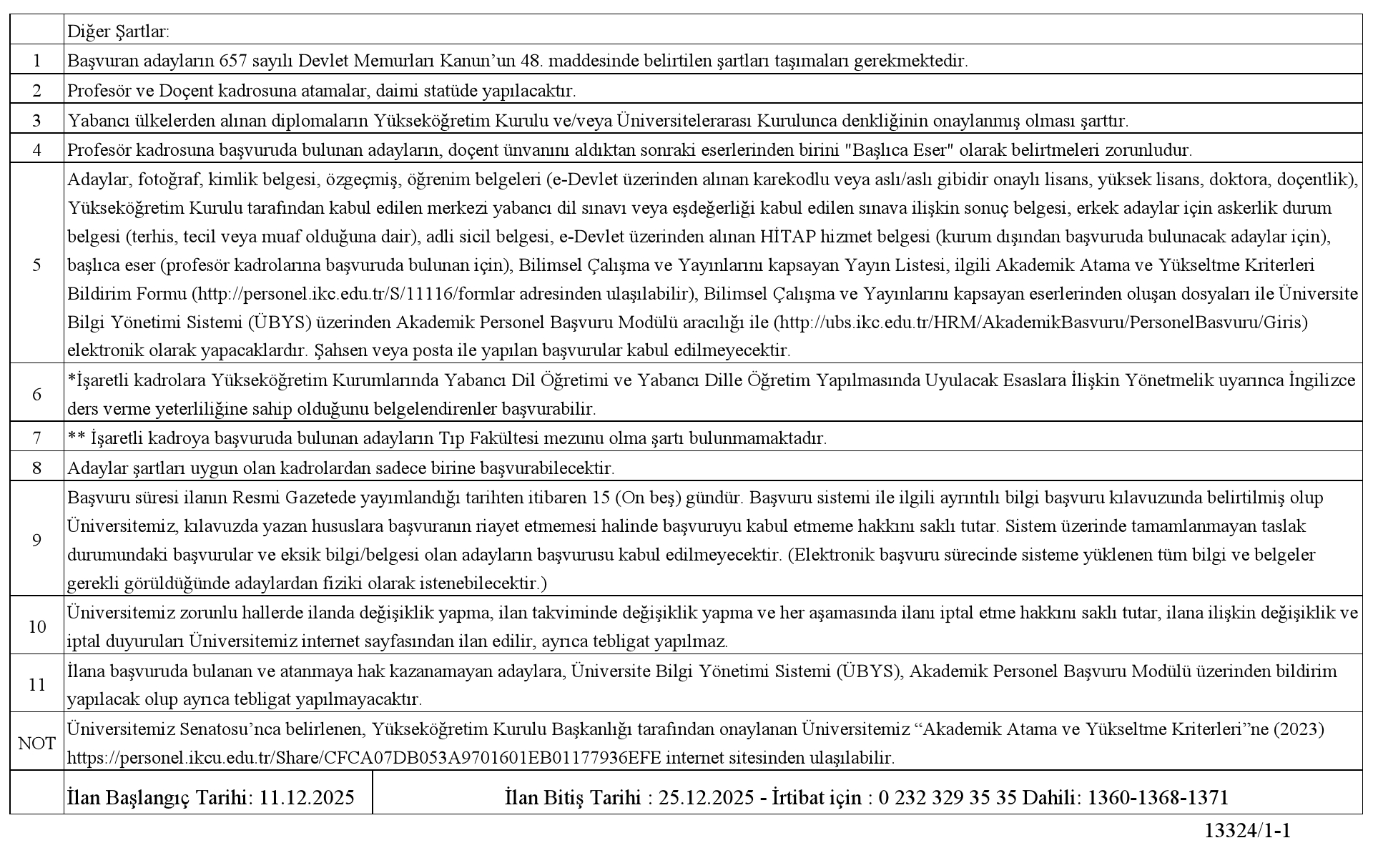 Üniversitemizin aşağıda belirtilen kadrolarına 2547 sayılı Yükseköğretim Kanunu, Öğretim Üyeliğine Yükseltilme ve Atanma Yönetmeliği ve Üniversitemiz Senatosu'nca belirlenerek Yükseköğretim Kurulu Başkanlığı tarafından onaylanan Akademik Atama ve Yükseltme Kriterleri uyarınca öğretim üyeleri alınacaktır.