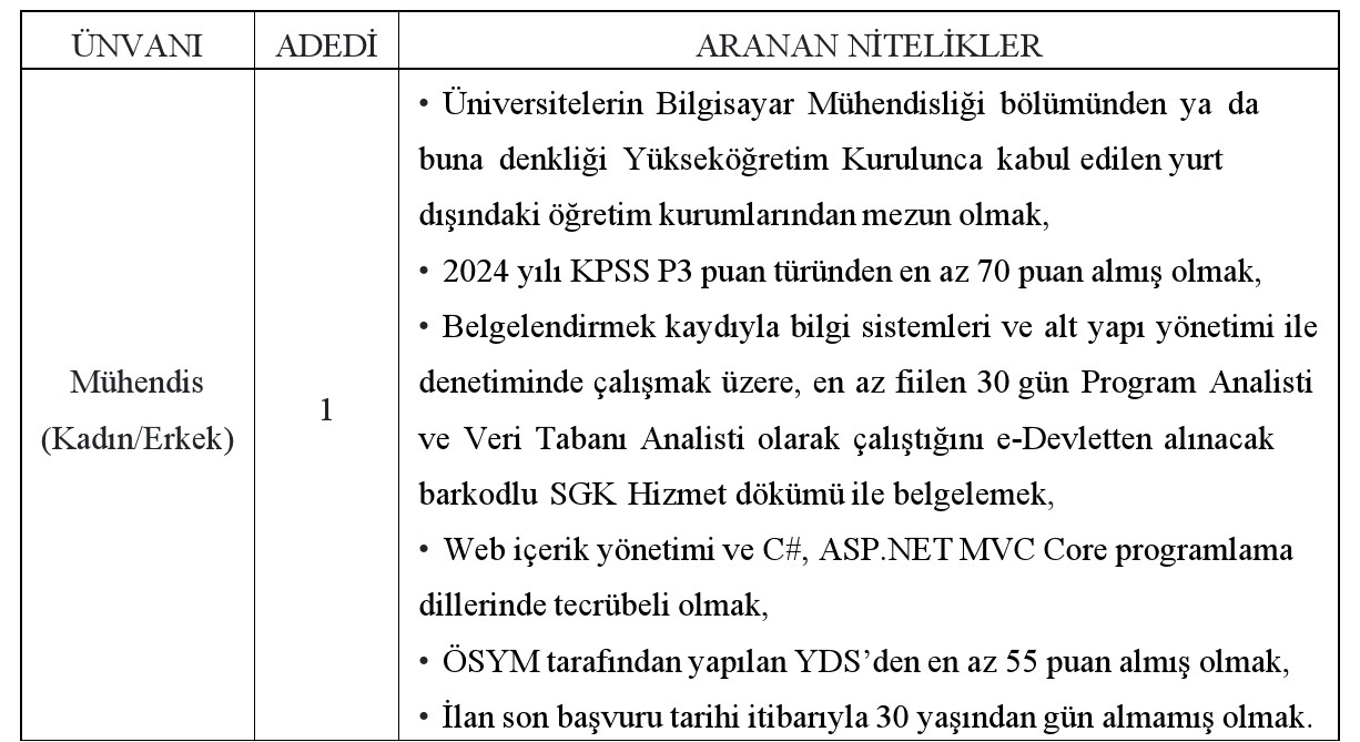 Üniversitemize 657 sayılı Devlet Memurları Kanunu'nun 4'üncü maddesinin (B) fıkrasına göre, 06.06.1978 tarihli ve 7/15754 sayılı Bakanlar Kurulu Kararı ile yürürlüğe konulan Sözleşmeli Personel Çalıştırılmasına İlişkin Esaslar'ın Ek 2'nci maddesinin (b) fıkrası uyarınca istihdam edilmek üzere, 2024 KPSS (B) grubu puan sıralaması esas alınmak suretiyle, yazılı ve sözlü sınav yapılmaksızın aşağıda belirtilen pozisyonda bir (1) adet sözleşmeli personel alımı yapılacaktır.