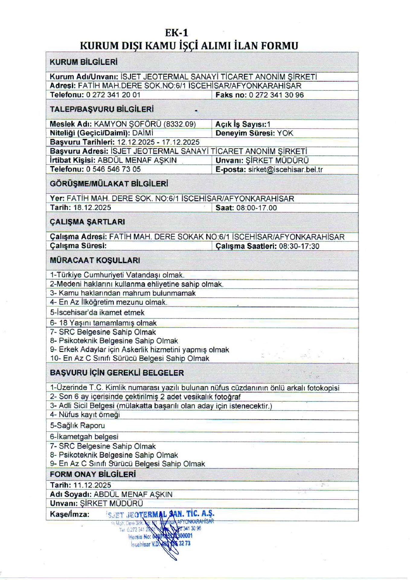 Ana sayfaDaimi İşçi İlanları Afyonkarahisar İSJET 1 İşçi Alacak Afyonkarahisar İSJET 1 İşçi Alacak. Son başvuru tarihi 12 Aralık 2025 Kaynak : İşkur İlan Giriş : 12 Aralık 2025 23:16, Son Güncelleme : 12 Aralık 2025 23:34 Yazdır Yorumlar (0) Abone Ol