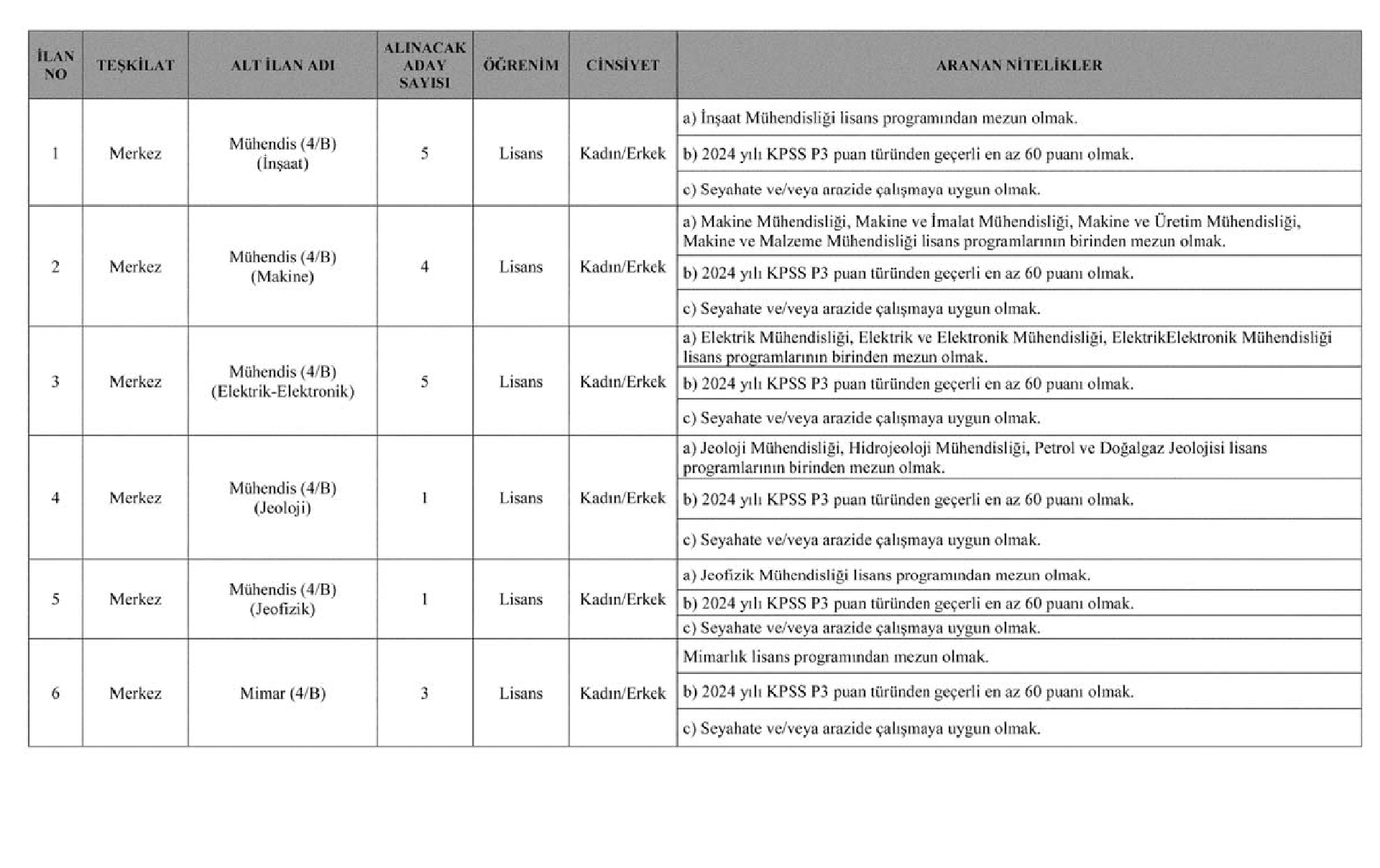 ç) Başvuruda bulunacak adayların ilanın sonunda bulunan Özel Nitelik Tablosunu incelemeleri önem arz etmektedir.