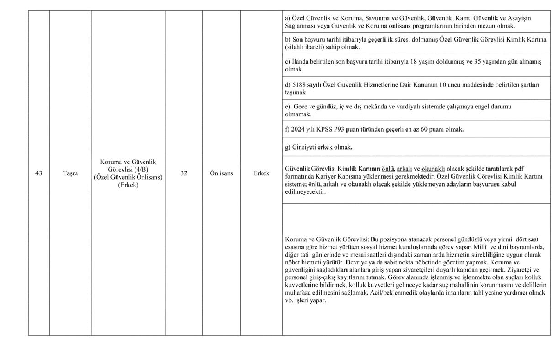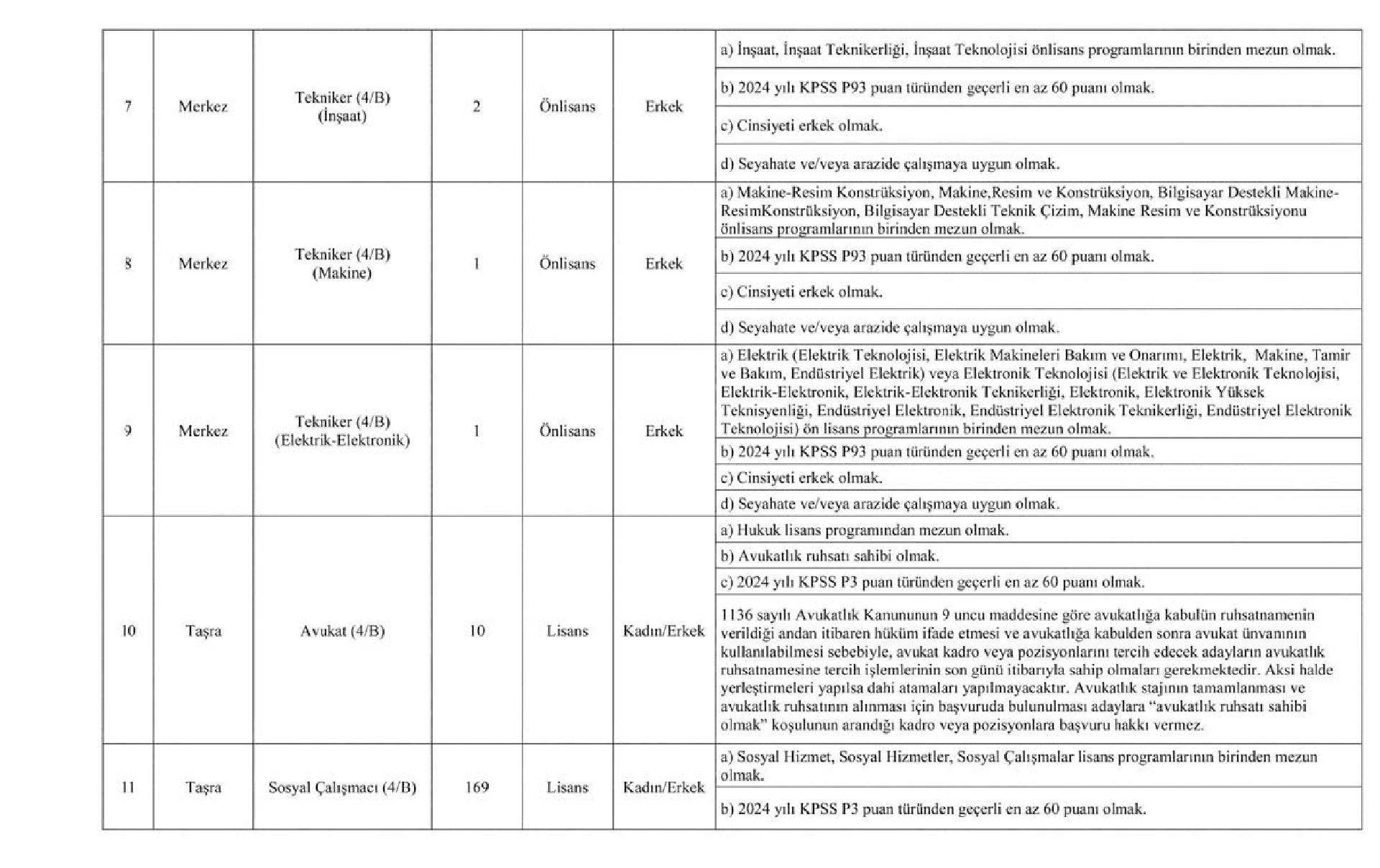 Belirtilen süre içinde Cumhurbaşkanlığı Kariyer Kapısı üzerinden yapılmayan başvurular dikkate alınmayacaktır.