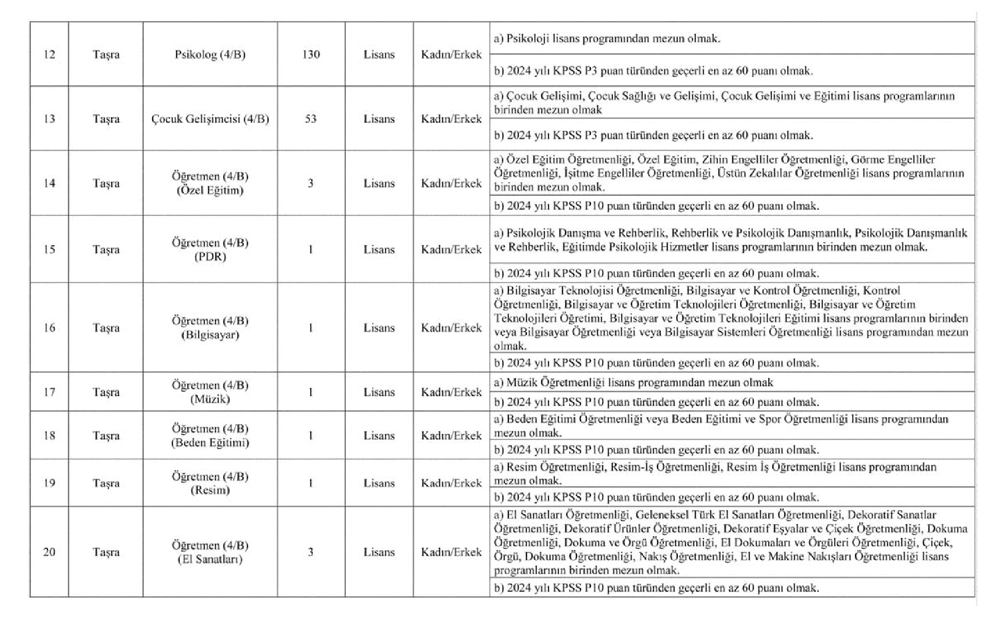 b) Son müracaat tarihi itibariyle başvuru yapılan sözleşmeli pozisyon için istenilen bölümden mezun olmak, (başvurduğu sözleşmeli personel pozisyonu için belirlenen öğrenim düzeyinin üstü bir öğrenim düzeyinde mezun durumda olup bu öğrenim düzeyinde KPSS puanı bulunan adayların başvuruları kabul edilmeyecektir.)