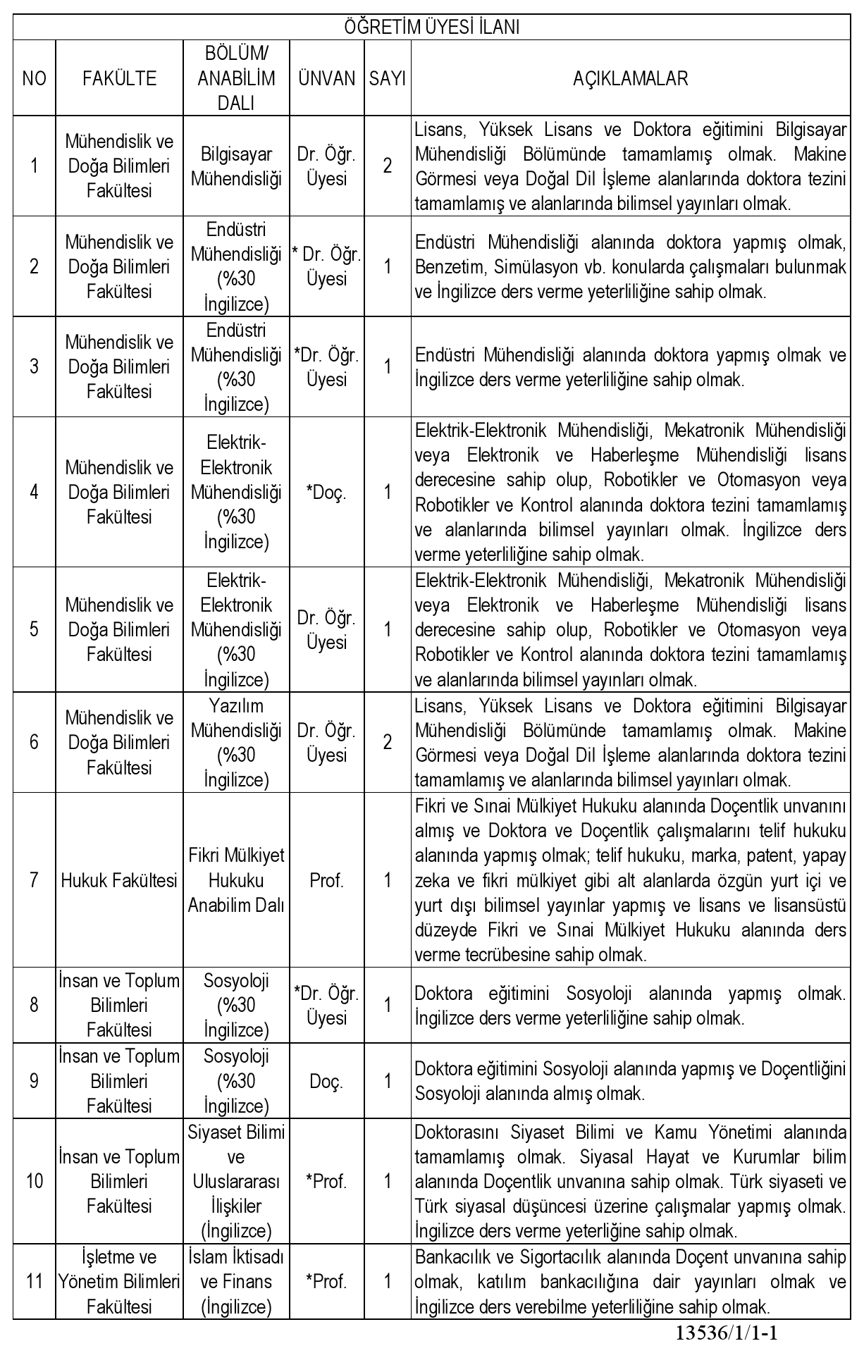 ÖĞRETİM ÜYESİ ALIM İLANI
