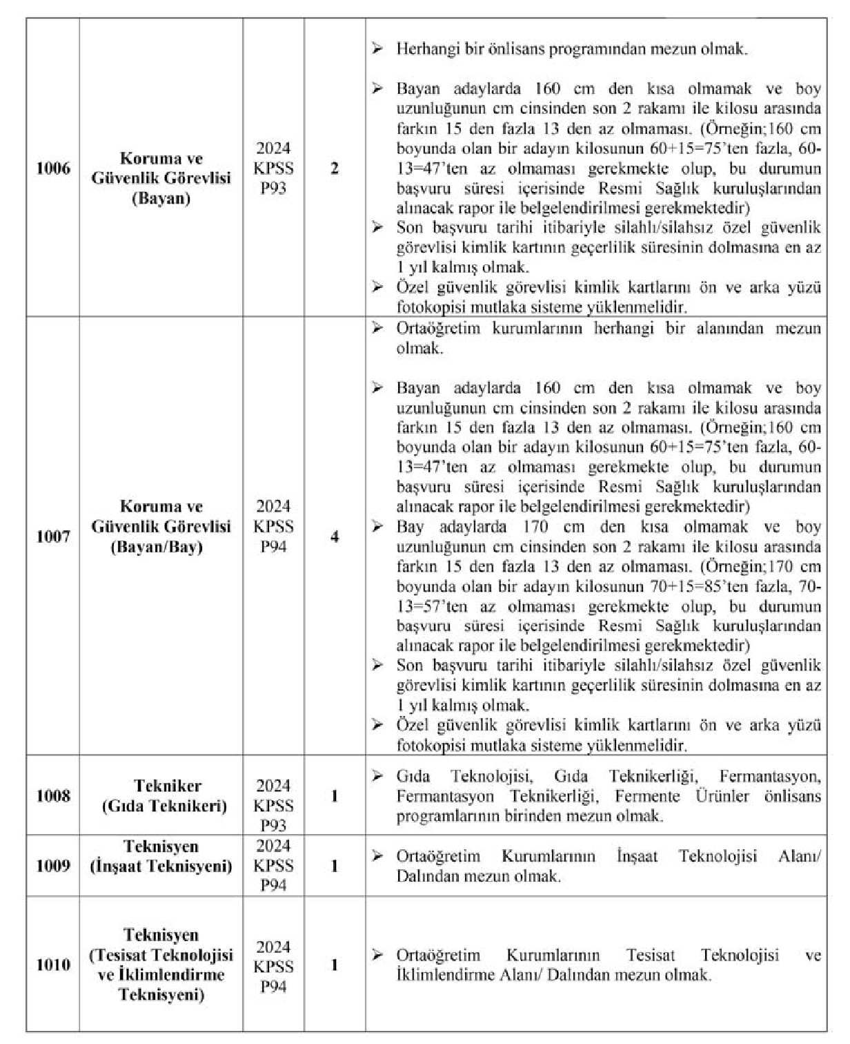16-Tüm pozisyonlar için ilave şart; 2024 KPSS (B) grubu puan türünden en az 55 puan almış olmak.