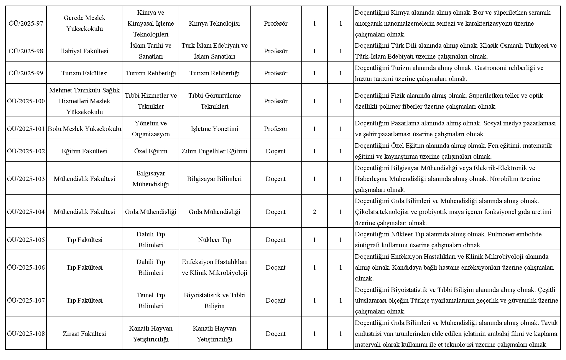 Bolu Abant İzzet Baysal Üniversitesi Öğretim Üyesi Alım İlanı. Son başvuru tarihi 29 Aralık 2025