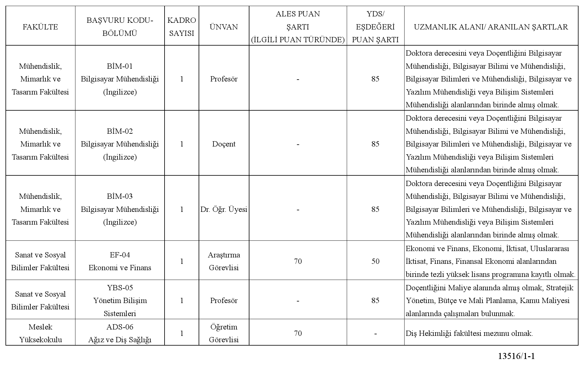 Profesör / Doçent / Doktor Öğretim Üyesi Kadroları İçin