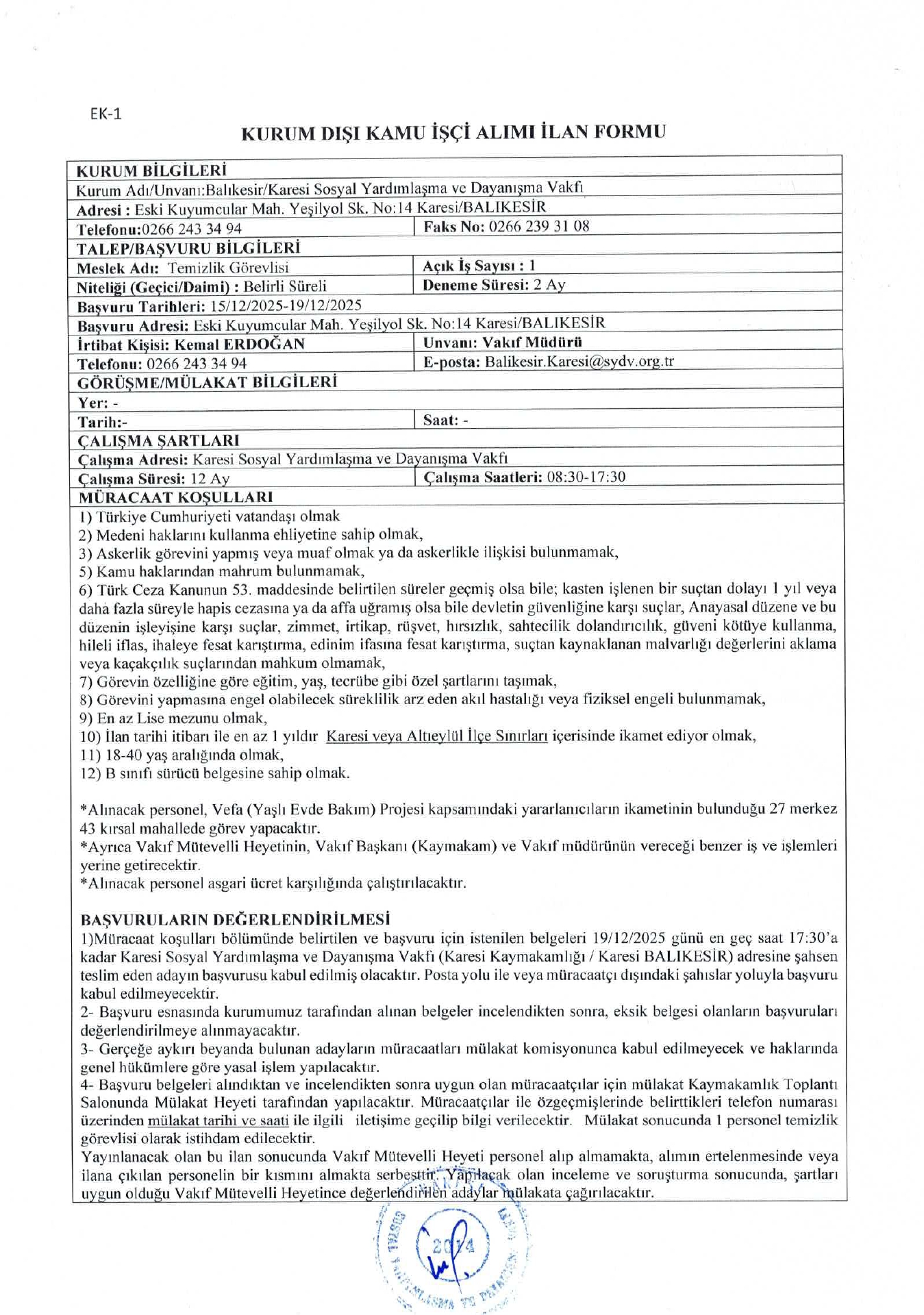 Ana sayfaDaimi İşçi İlanlarıAna sayfaSYDV İlanları Balıkesir Karesi SYDV 1 İşçi Alacak Balıkesir Karesi SYDV 1 İşçi Alacak. Son başvuru tarihi 19 Aralık 2025 Kaynak : İşkur İlan Giriş : 15 Aralık 2025 23:20, Son Güncelleme : 15 Aralık 2025 23:30 Yazdır Yorumlar (0) Abone Ol