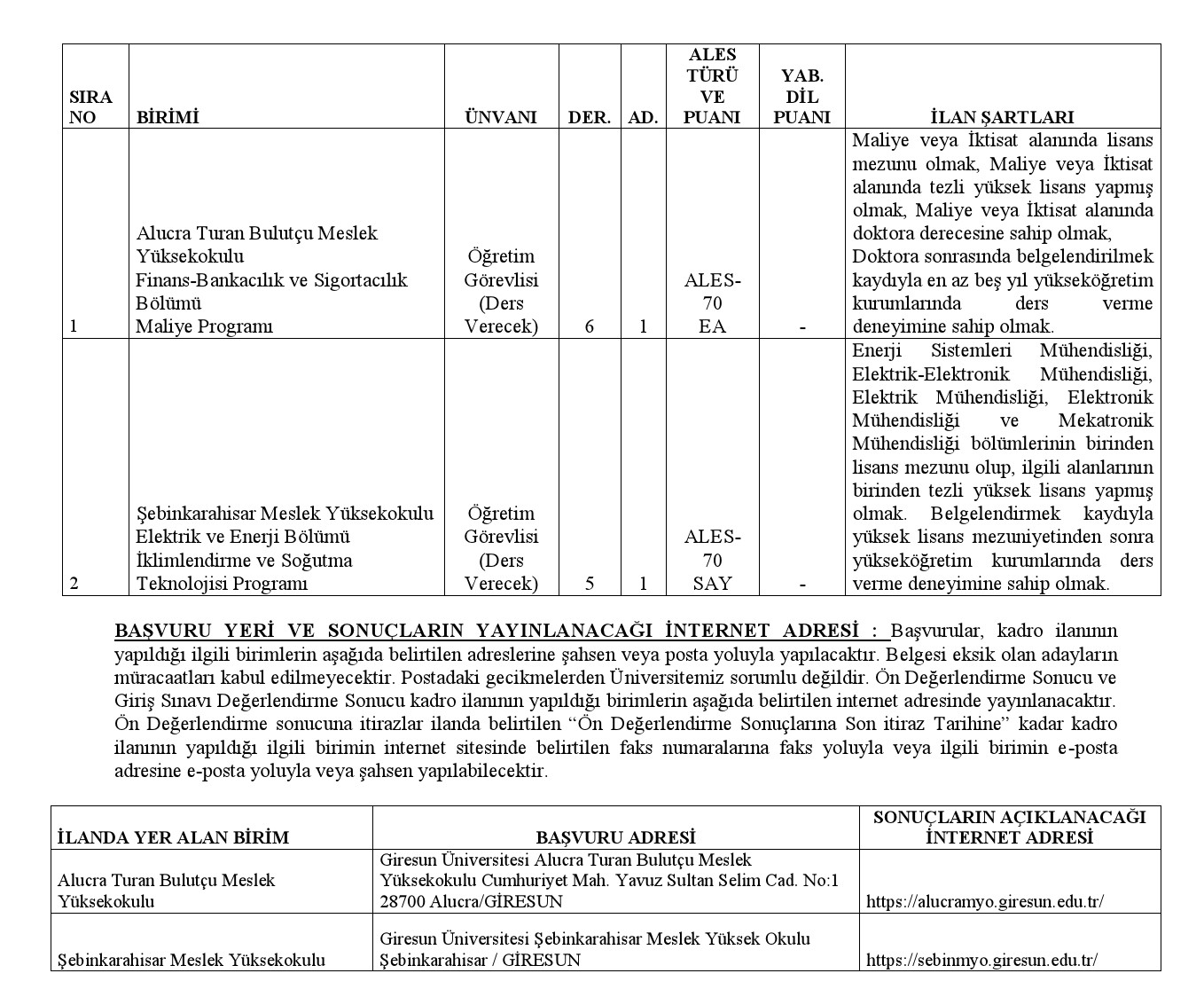 Giresun Üniversitesi Öğretim Elemanı Alım İlanı