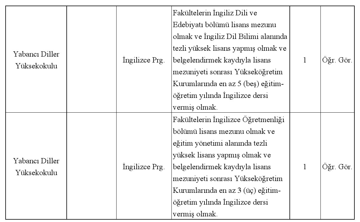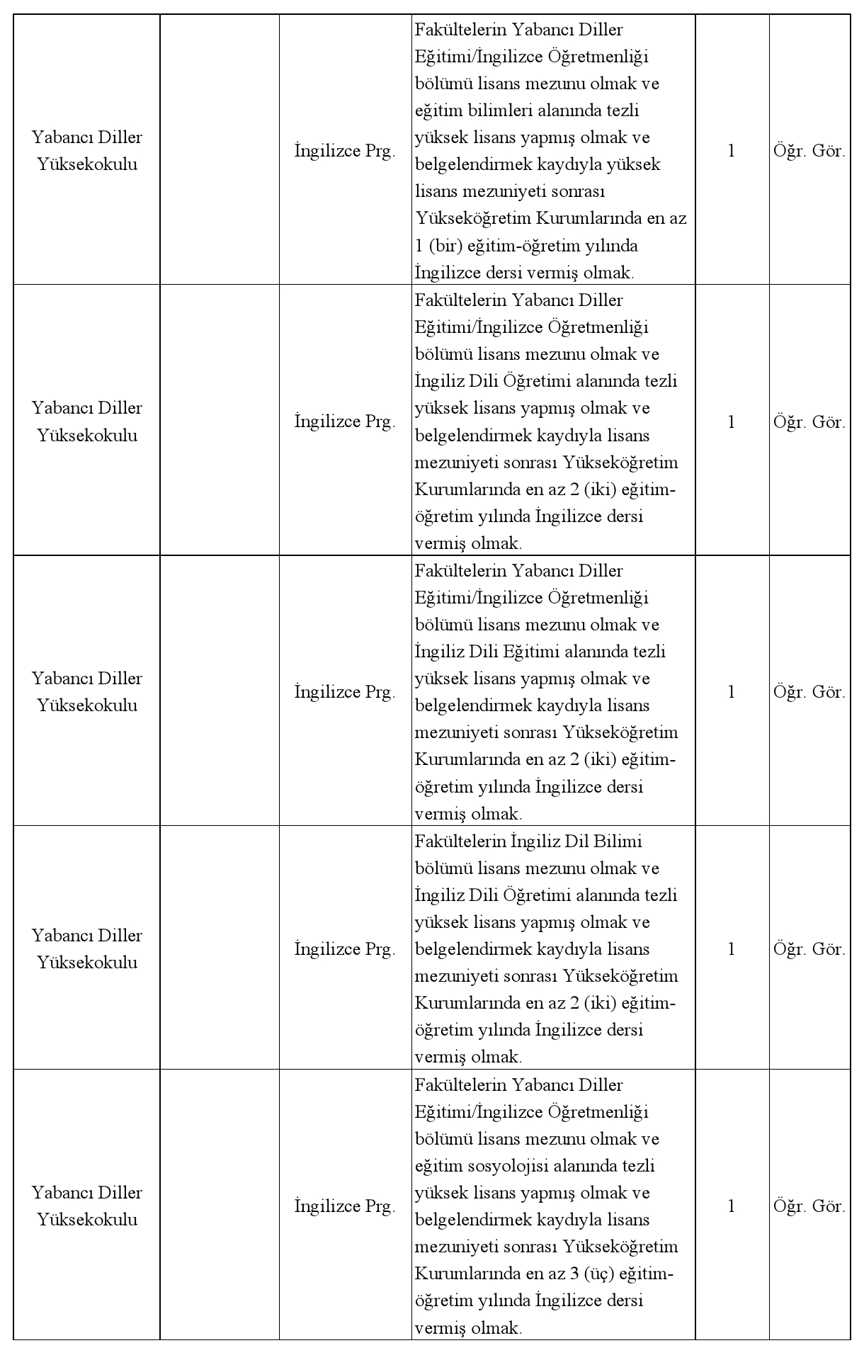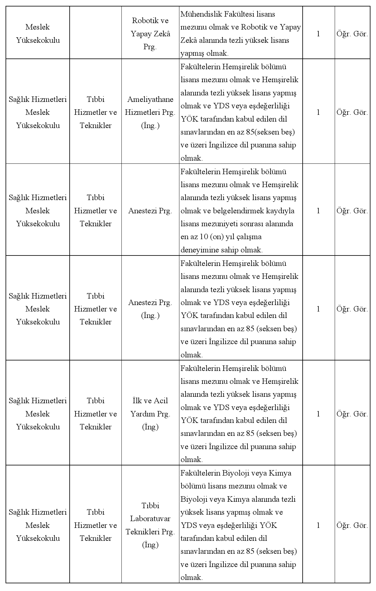 Üniversitemizin aşağıda belirtilen akademik birimlerine; 2547 sayılı Yükseköğretim Kanunu'nun ilgili maddeleri ile Öğretim Üyeliğine Yükseltilme ve Atanma Yönetmeliği'nin ve Öğretim Üyesi Dışındaki Öğretim Elemanı Kadrolarına Yapılacak Atamalarda Uygulanacak Merkezi Sınav ile Giriş Sınavlarına İlişkin Usul ve Esaslar Hakkında Yönetmelik'in yürürlükteki ilgili maddelerine göre "Devamlı statüde" Öğretim Üyesi ve Öğretim Elemanı alınacaktır.