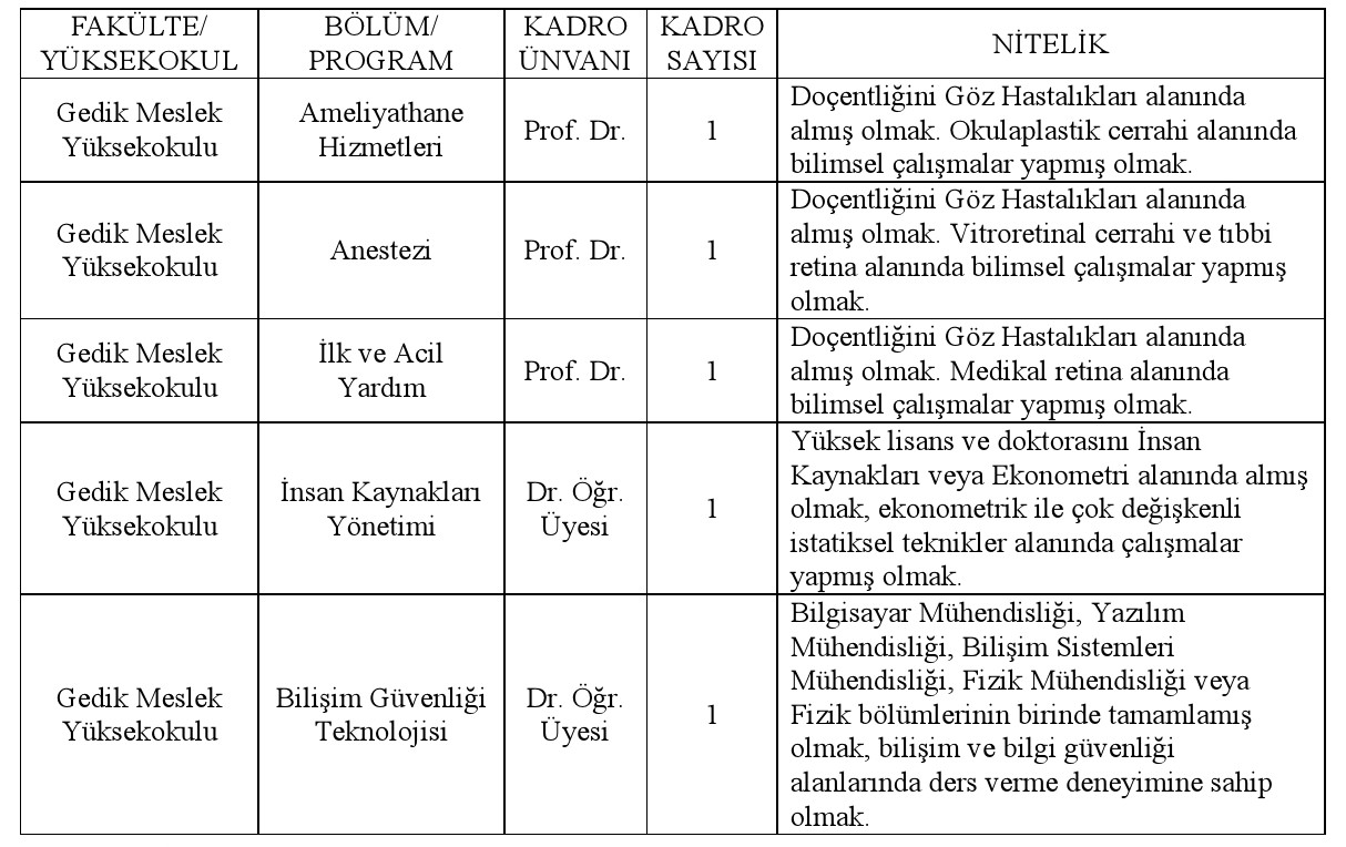 İlanlar ile ilgili tüm bilgiler ve başvuru koşulları Üniversitemizin http://www.gedik.edu.tr adresinde yer almaktadır.