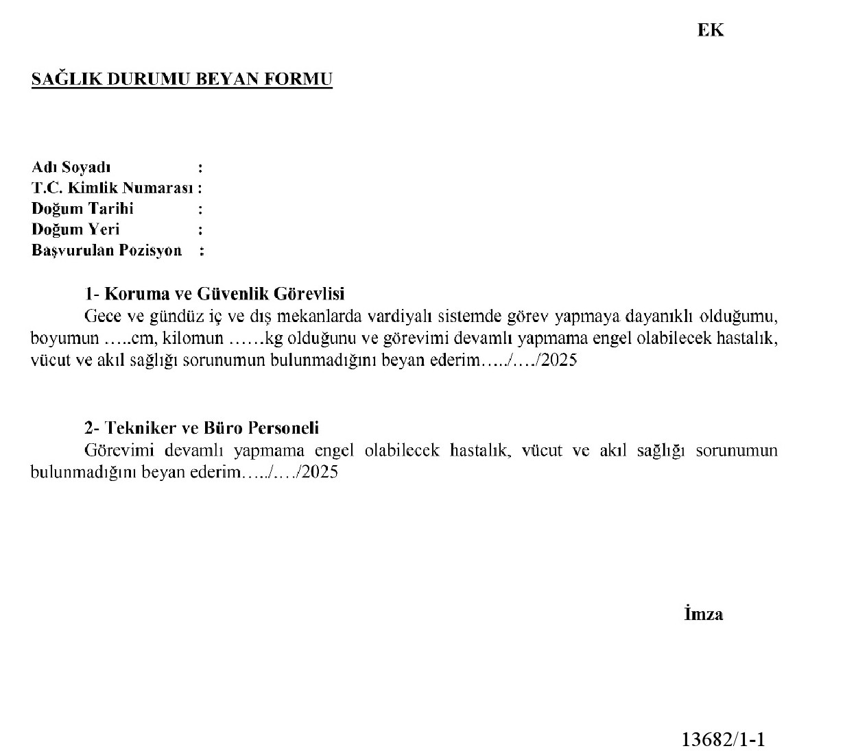 d) İlanda yer alan pozisyonlara başvuran adaylardan özel şartlarda yer alan sağlık koşullarını taşıdıklarına dair beyan belgesi (Ekte yer alan Sağlık Beyan Formu doldurularak eklenecektir.)