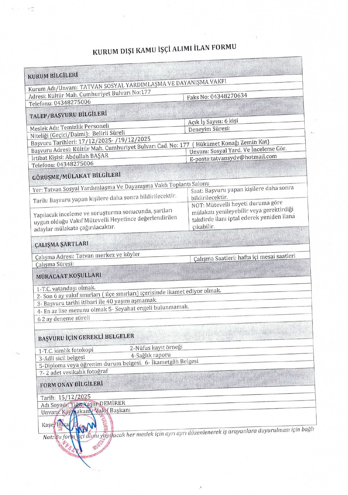 Ana sayfaDaimi İşçi İlanlarıAna sayfaSYDV İlanları Tatvan SYDV 6 İşçi Alacak Tatvan SYDV 6 İşçi Alacak. Son Başvuru Tarihi 19 Aralık 2025 Kaynak : İşkur İlan Giriş : 18 Aralık 2025 00:40, Son Güncelleme : 18 Aralık 2025 00:41 Yazdır Yorumlar (0) Abone Ol