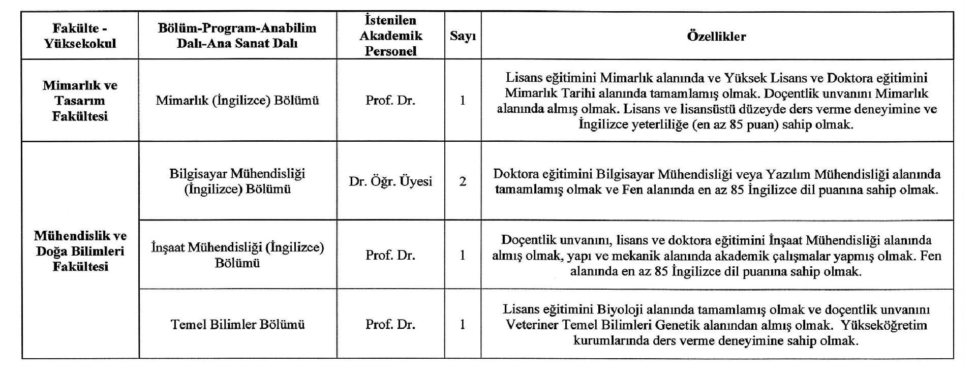ÖĞRETİM ÜYESİ ALIM İLANI