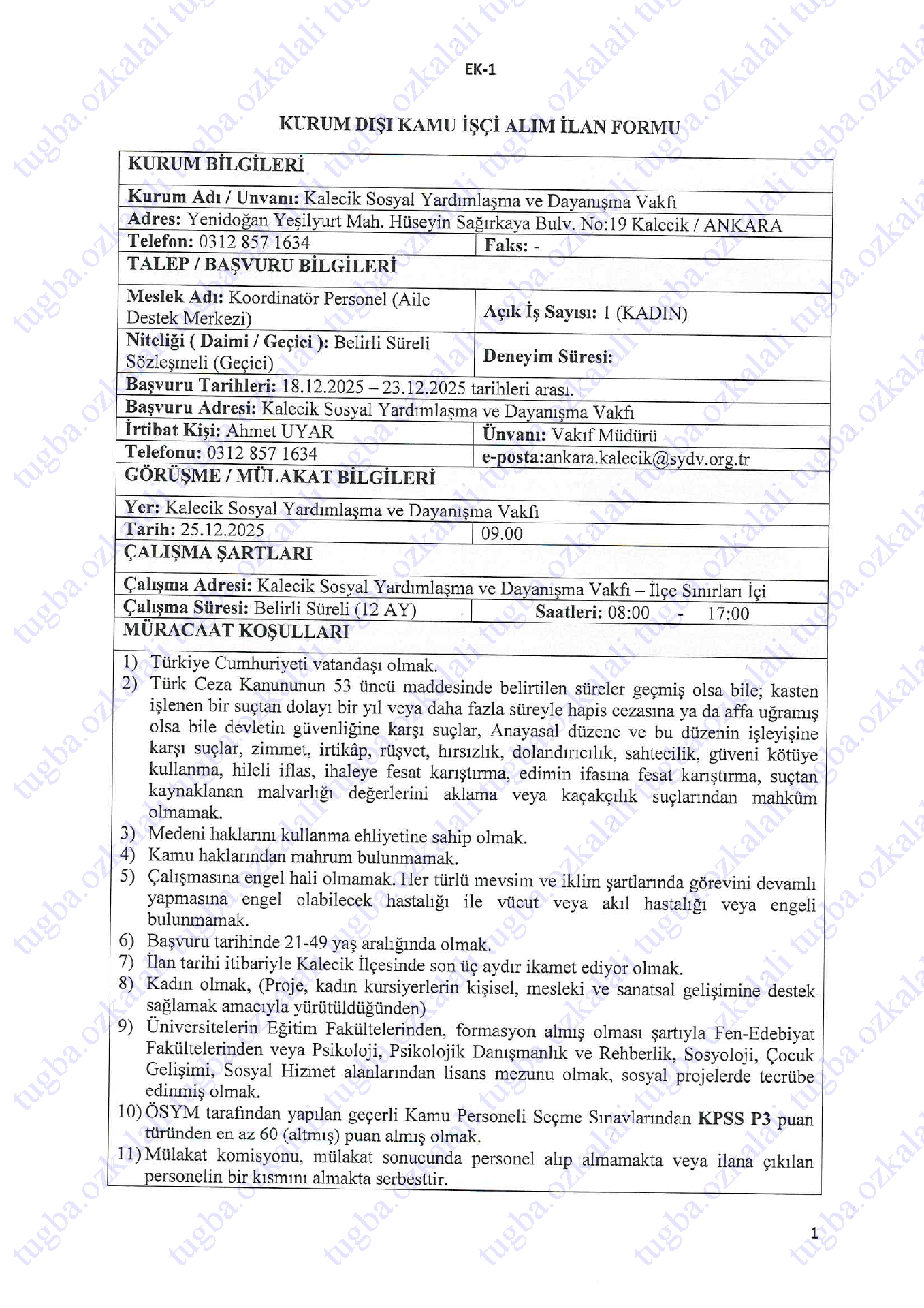 Ana sayfaSYDV İlanlarıAna sayfaGeçici İşçi İlanları Ankara Kalecik SYDV Geçici 1 İşçi Alacak Ankara Kalecik SYDV Geçici 1 İşçi Alacak. Son başvuru tarihi 23 Aralık 2025 Kaynak : İşkur İlan Giriş : 19 Aralık 2025 00:14, Son Güncelleme : 19 Aralık 2025 00:50 Yazdır Yorumlar (0) Abone Ol