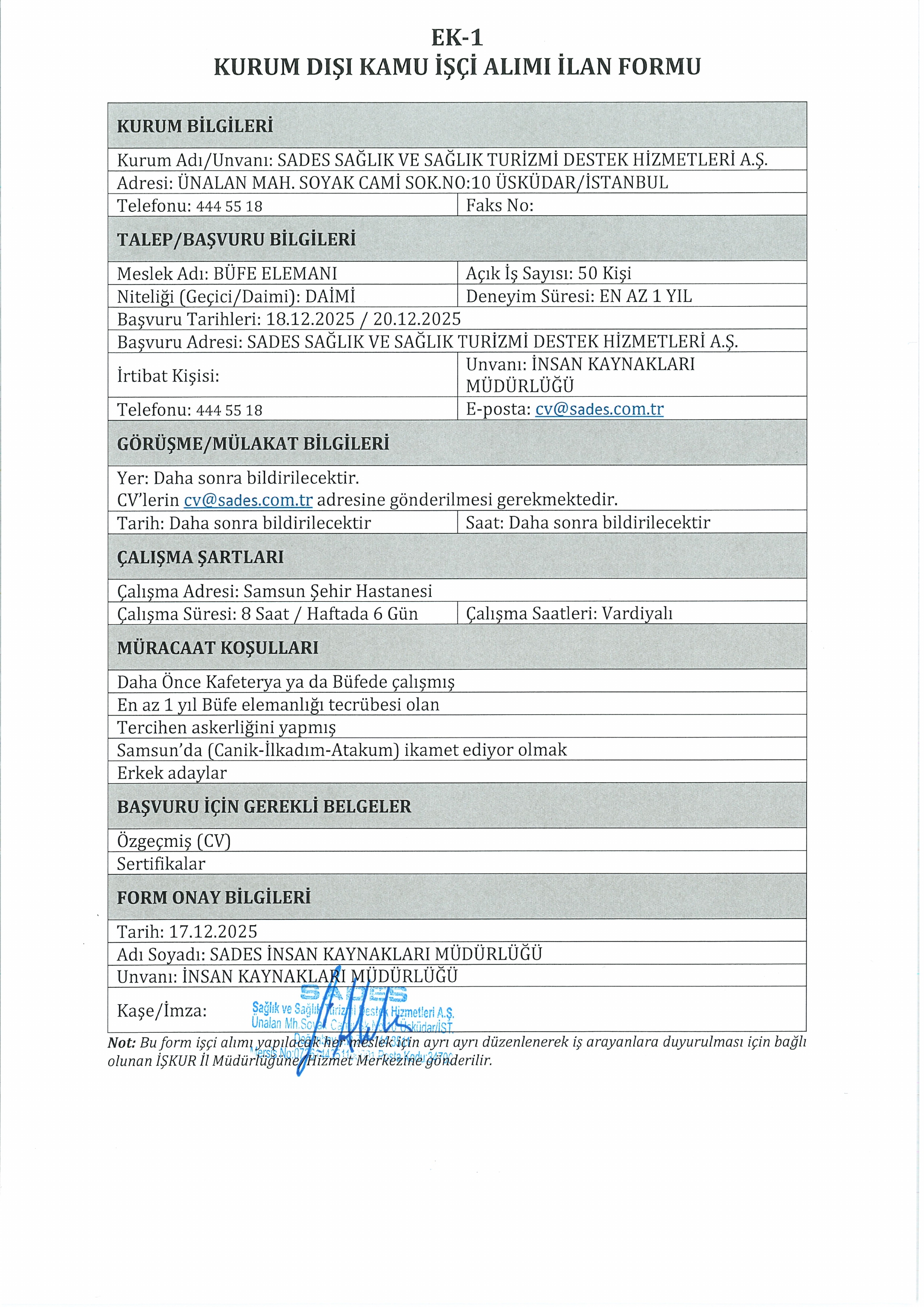 Ana sayfaDaimi İşçi İlanları İstanbul Sades Sağlık 50 İşçi Alacak İstanbul Sades Sağlık 50 İşçi Alacak. Son başvuru tarihi 20 Aralık 2025 Kaynak : İşkur İlan Giriş : 19 Aralık 2025 00:32, Son Güncelleme : 19 Aralık 2025 00:46 Yazdır Yorumlar (0) Abone Ol