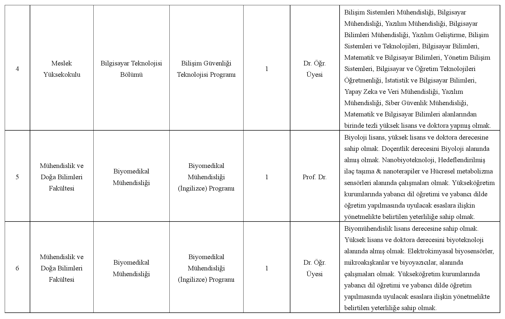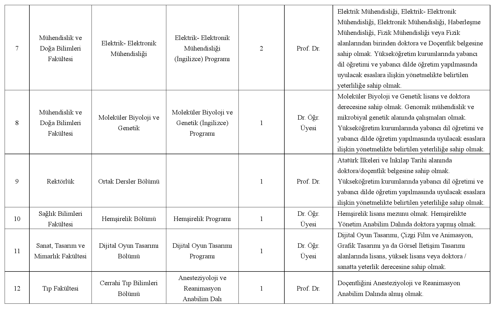 Üniversitemize 2547 sayılı Yükseköğretim Kanunu'nun ve Öğretim Üyeliğine Yükseltilme ve Atanma Yönetmeliği'nin ilgili maddeleri uyarınca Öğretim Üyesi alınacaktır.