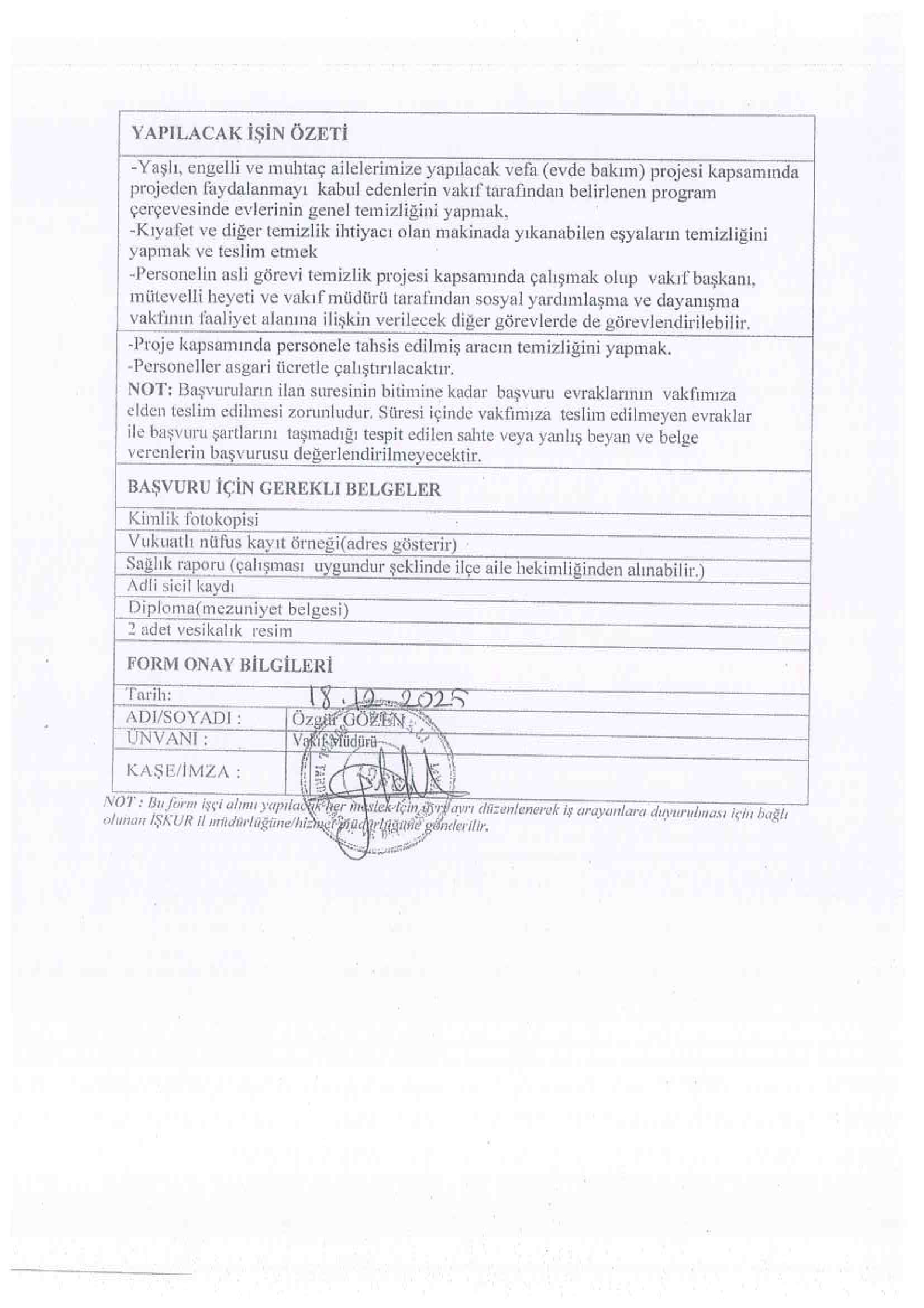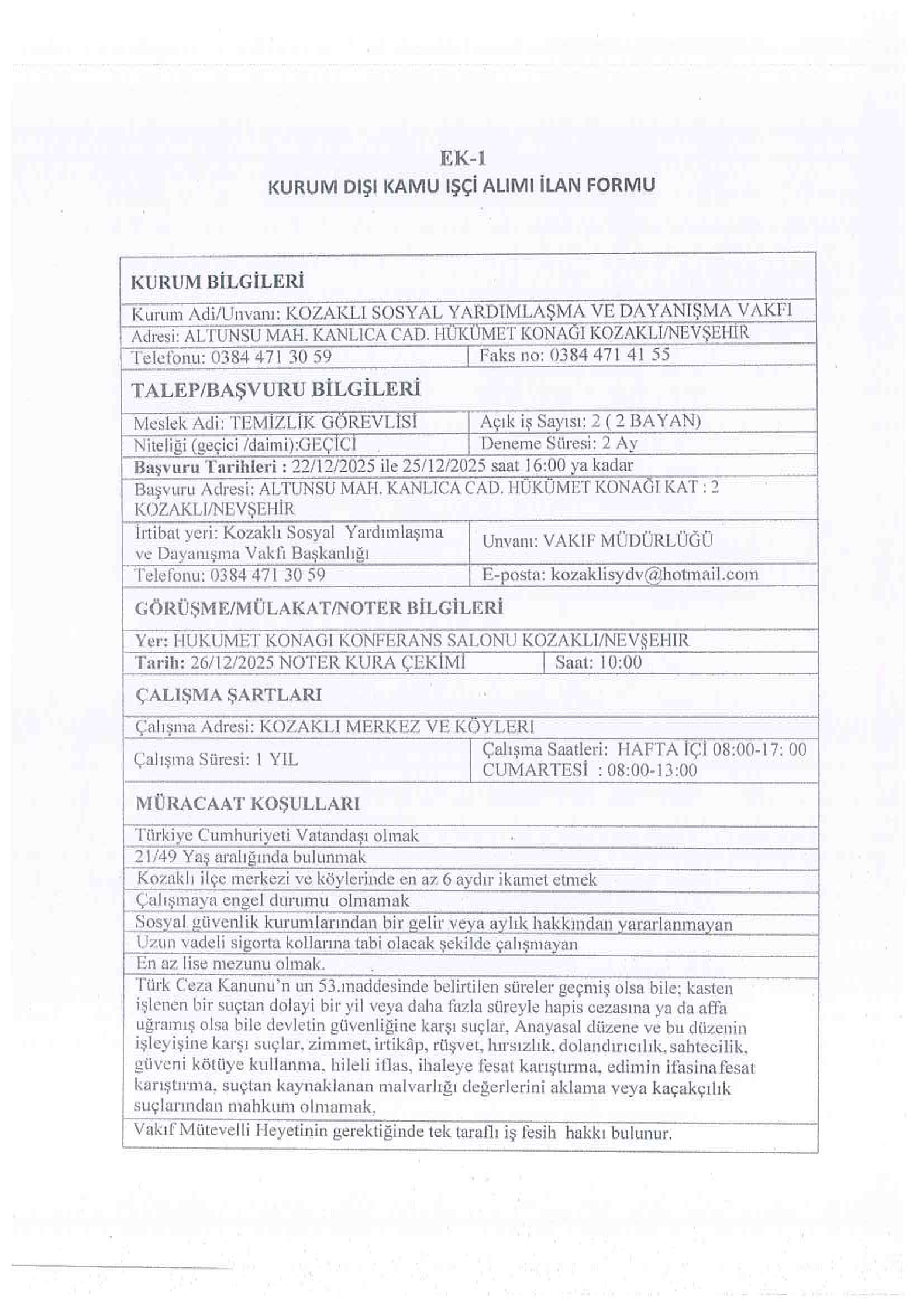 Ana sayfaSYDV İlanlarıAna sayfaGeçici İşçi İlanları Nevşehir Kozaklı SYDV Geçici 2 İşçi Alacak Nevşehir Kozaklı SYDV Geçici 2 İşçi Alacak. Son başvuru tarihi 25 Aralık 2025 Kaynak : İşkur İlan Giriş : 19 Aralık 2025 23:00, Son Güncelleme : 19 Aralık 2025 22:45 Yazdır Yorumlar (0) Abone Ol