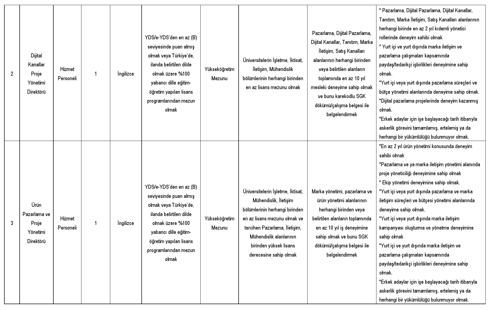 3. Adaylar ilan edilen pozisyonlardan sadece birine başvuru yapabilecektir. Birden fazla pozisyona yapılan başvuruların tamamı geçersiz sayılacaktır.