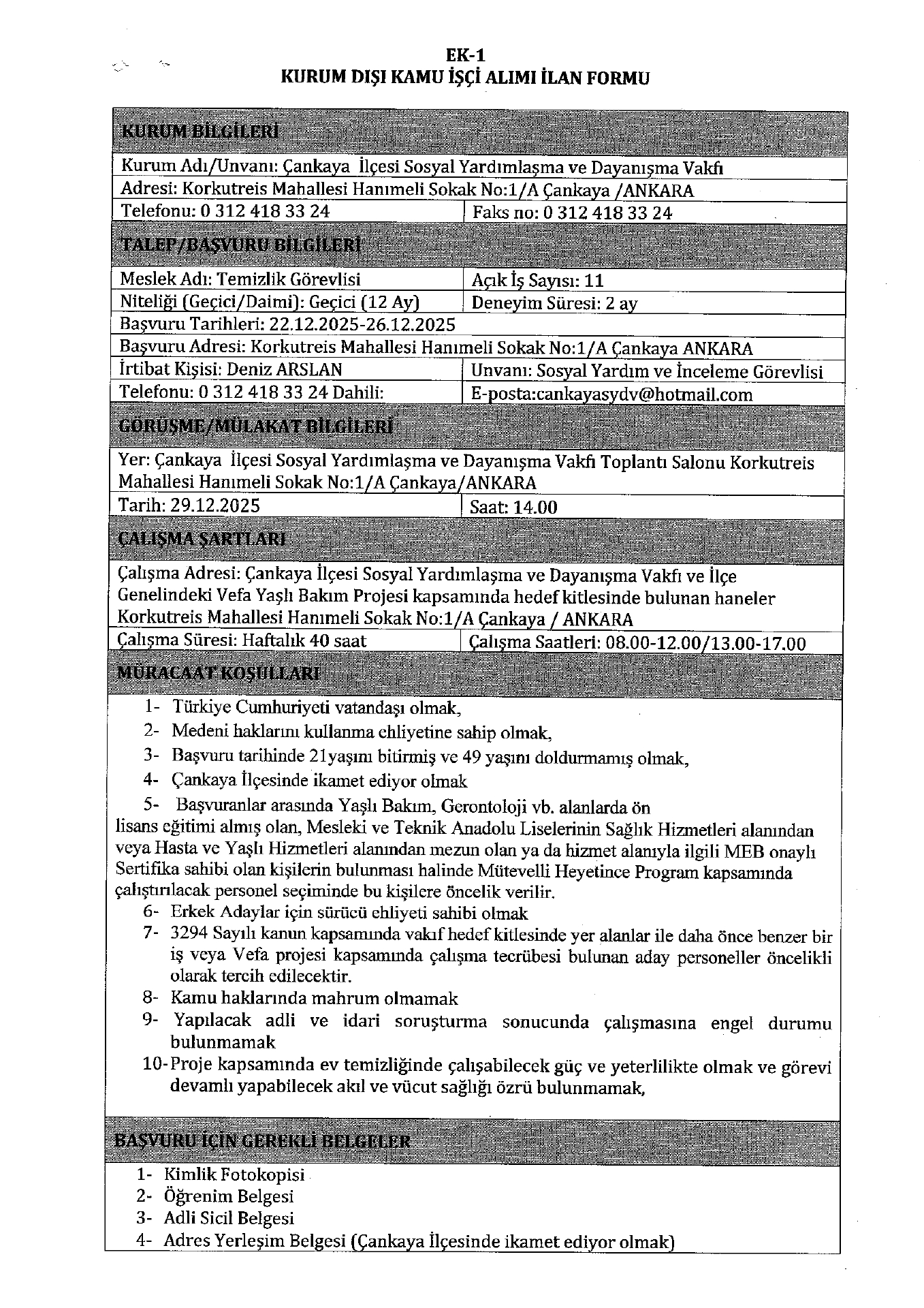 Ana sayfaSYDV İlanlarıAna sayfaGeçici İşçi İlanları Amkara Çankaya SYDV Geçici 11 İşçi Alacak Amkara Çankaya SYDV Geçici 11 İşçi Alacak. Son başvuru tarihi 26 Aralık 2025 Kaynak : İşkur İlan Giriş : 22 Aralık 2025 22:54, Son Güncelleme : 22 Aralık 2025 23:42 Yazdır Yorumlar (0) Abone Ol