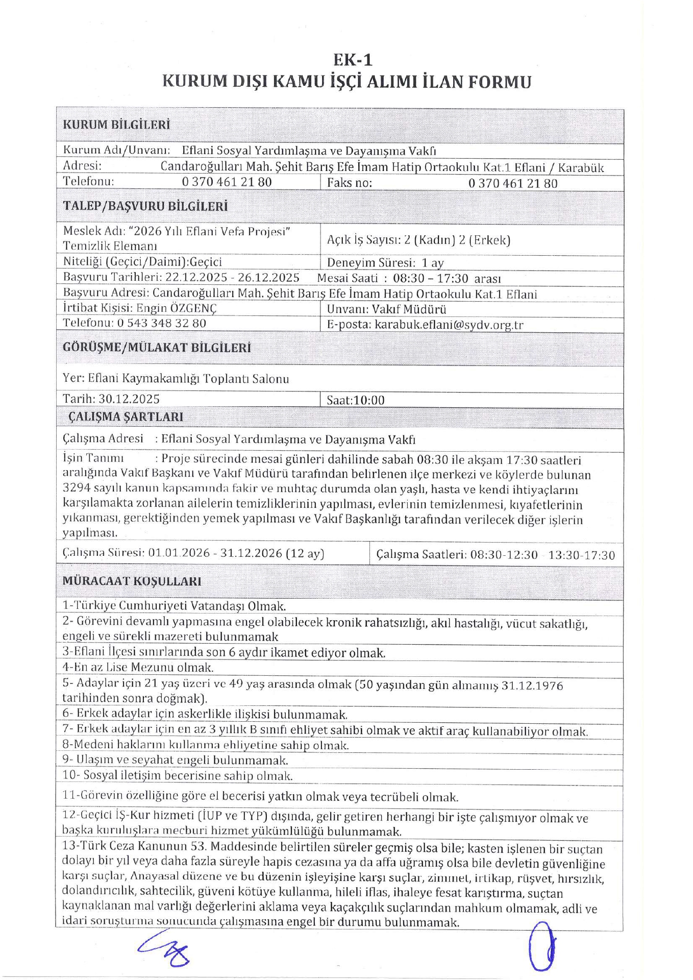 Ana sayfaSYDV İlanlarıAna sayfaGeçici İşçi İlanları Karabük Eflani SYDV Geçici 4 İşçi Alacak Karabük Eflani SYDV Geçici 4 İşçi Alacak. Son başvuru tarihi 26 Aralık 2025 Kaynak : İşkur İlan Giriş : 22 Aralık 2025 23:16, Son Güncelleme : 22 Aralık 2025 23:35 Yazdır Yorumlar (0) Abone Ol
