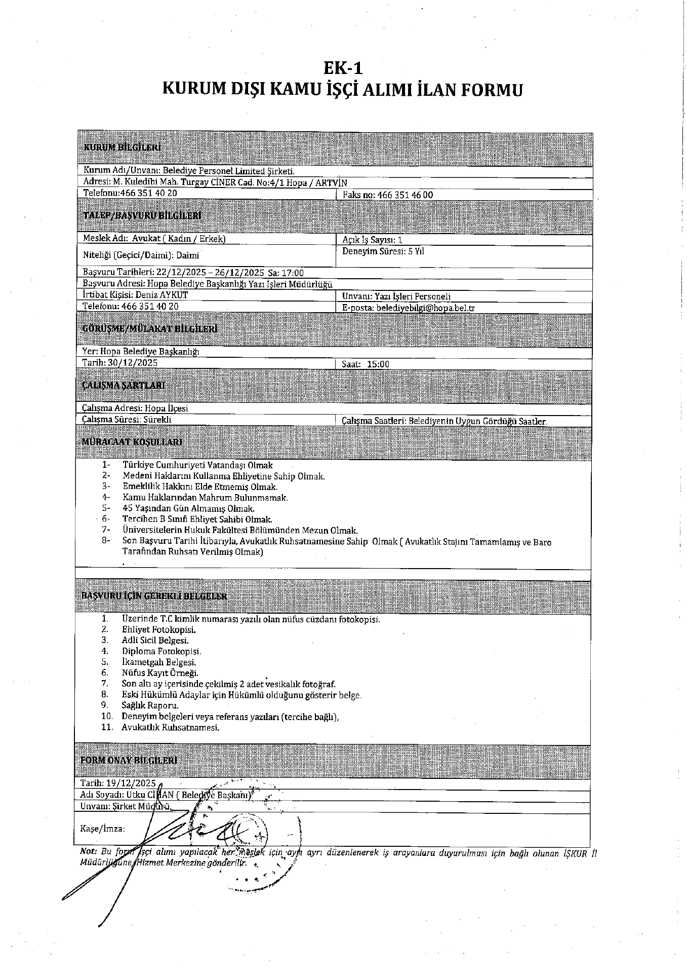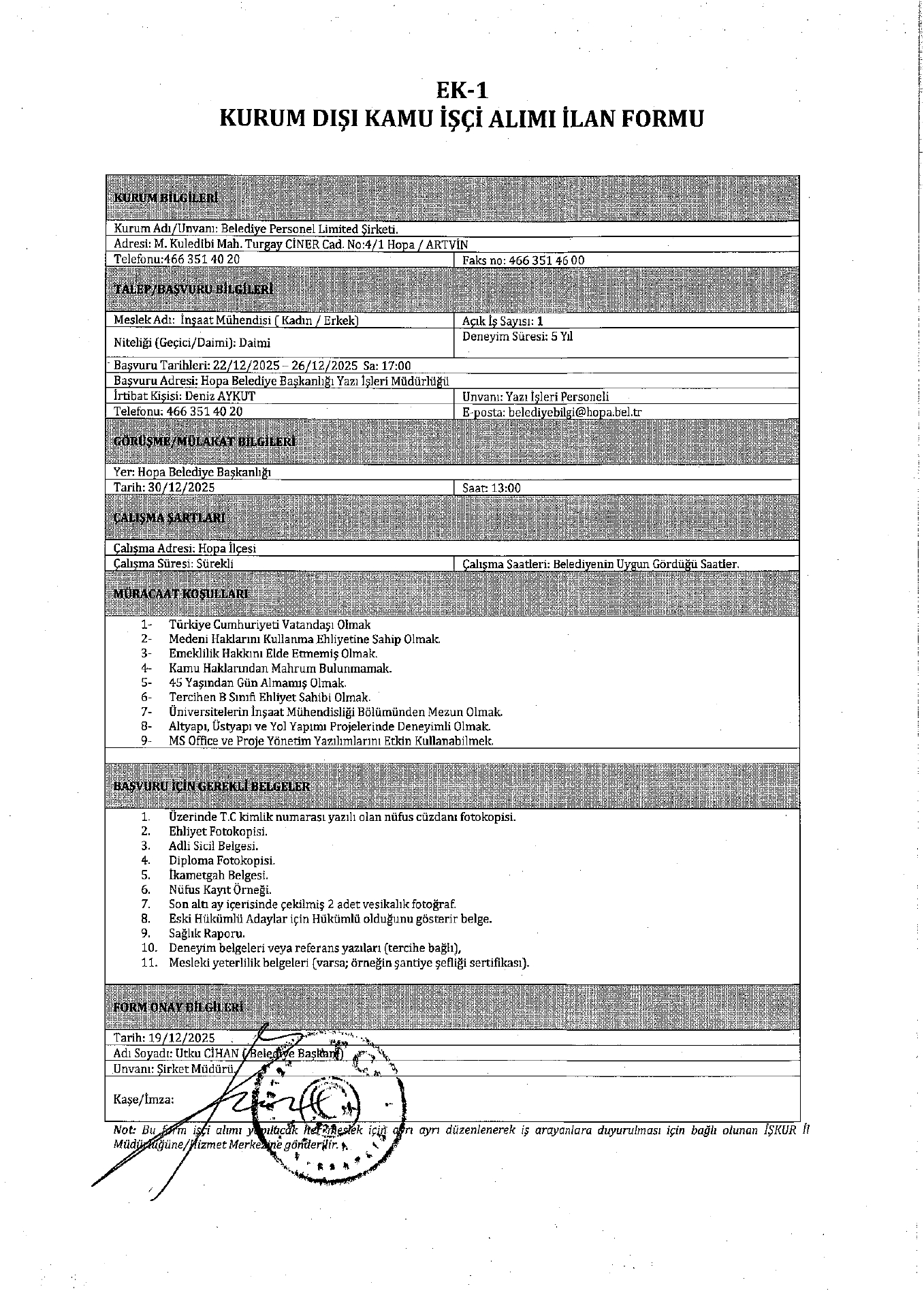 Ana sayfaDaimi İşçi İlanları Artvin Hopa Belediyesi 1 İşçi Alacak Artvin Hopa Belediyesi 1 İşçi Alacak. Son başvuru tarihi 26 Aralık 2025 Kaynak : İşkur İlan Giriş : 22 Aralık 2025 23:32, Son Güncelleme : 22 Aralık 2025 23:30 Yazdır Yorumlar (0) Abone Ol