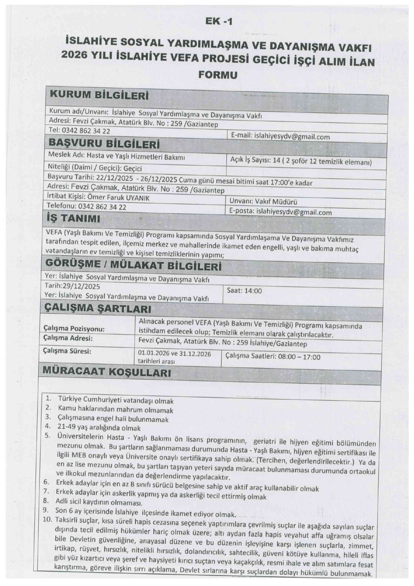Ana sayfaSYDV İlanlarıAna sayfaGeçici İşçi İlanları Gaziantep İslahiye SYDV Geçici 14 İşçi Alacak Gaziantep İslahiye SYDV Geçici 14 İşçi Alacak. Son başvuru tarihi 26 Aralık 2025 Kaynak : İşkur İlan Giriş : 22 Aralık 2025 23:35, Son Güncelleme : 22 Aralık 2025 23:29 Yazdır Yorumlar (0) Abone Ol