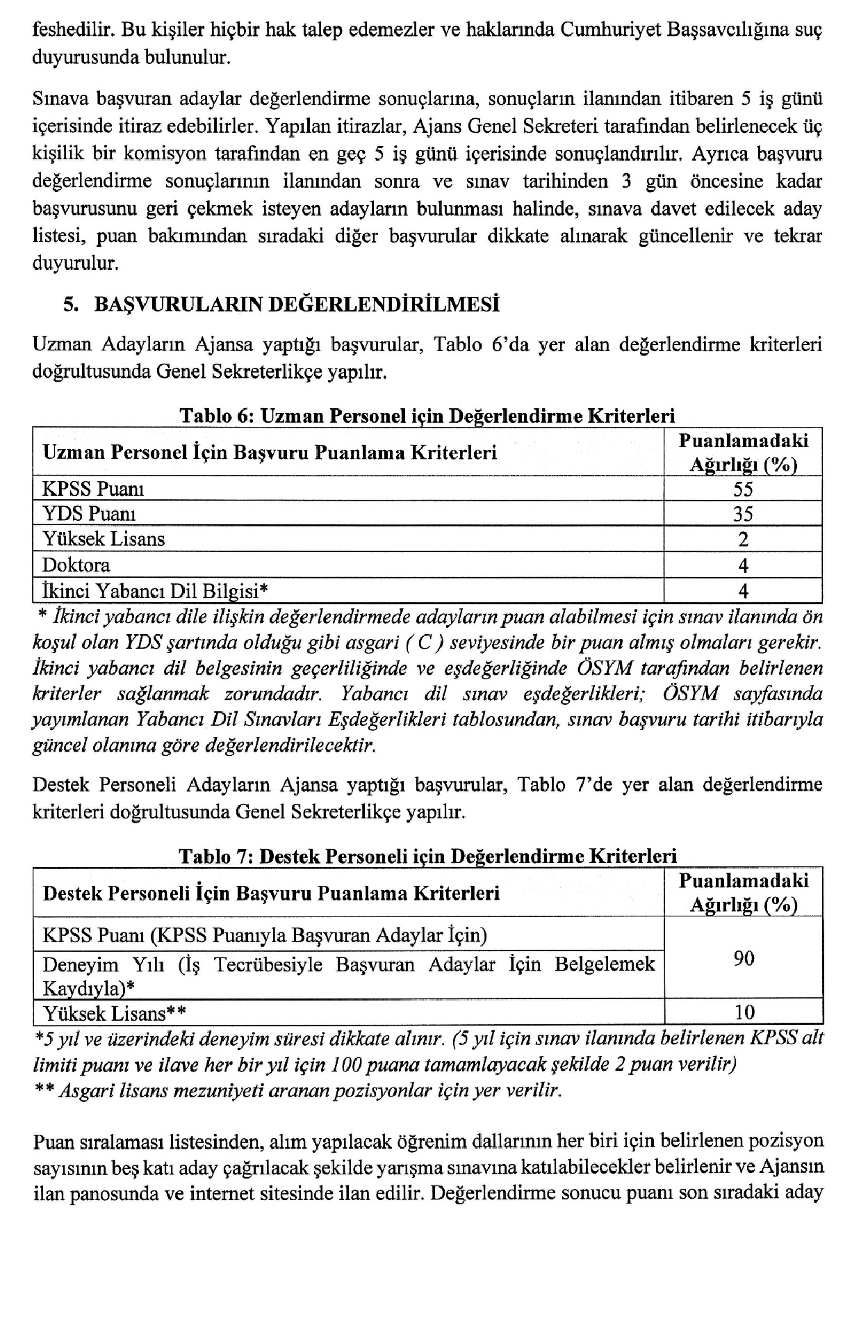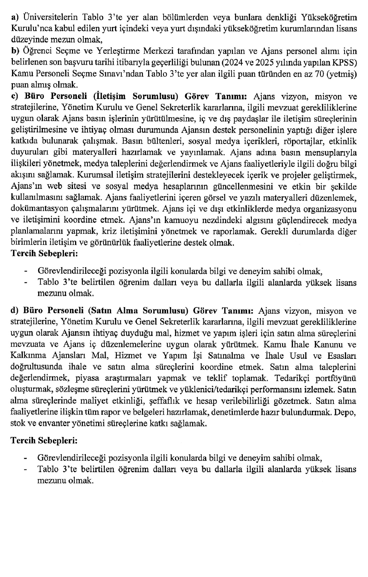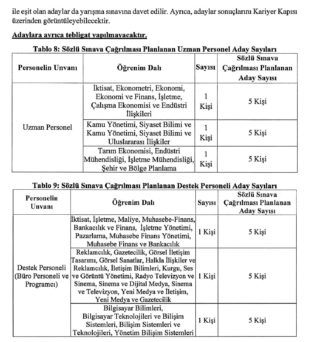 Sözlü sınava girmeye hak kazanan adaylar, Ajansın internet sayfasında ve Kariyer Kapısı Platformu'nda (https://kariYerkapisi.gov.tr/) belirtilen tarih ve saatte kimlik kartı veya sürücü belgesi ile sınav yerinde hazır bulunacaklardır.