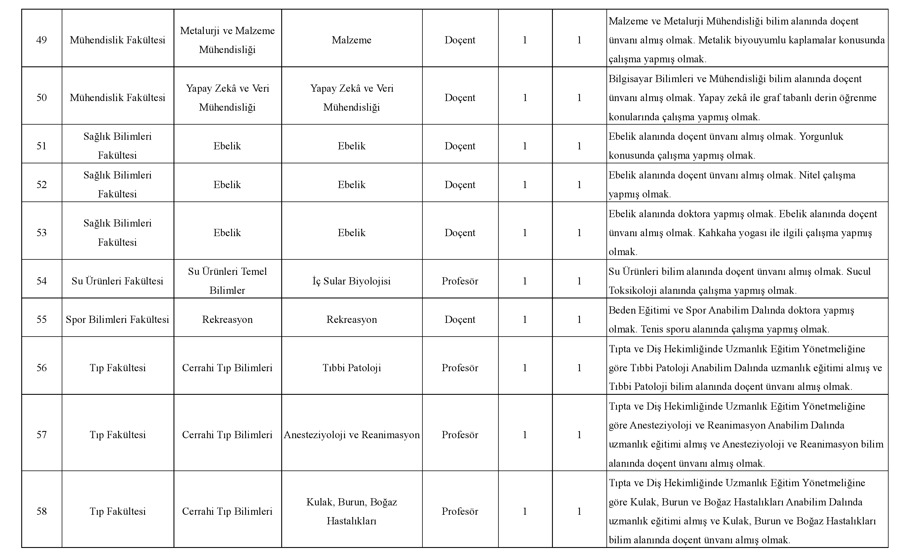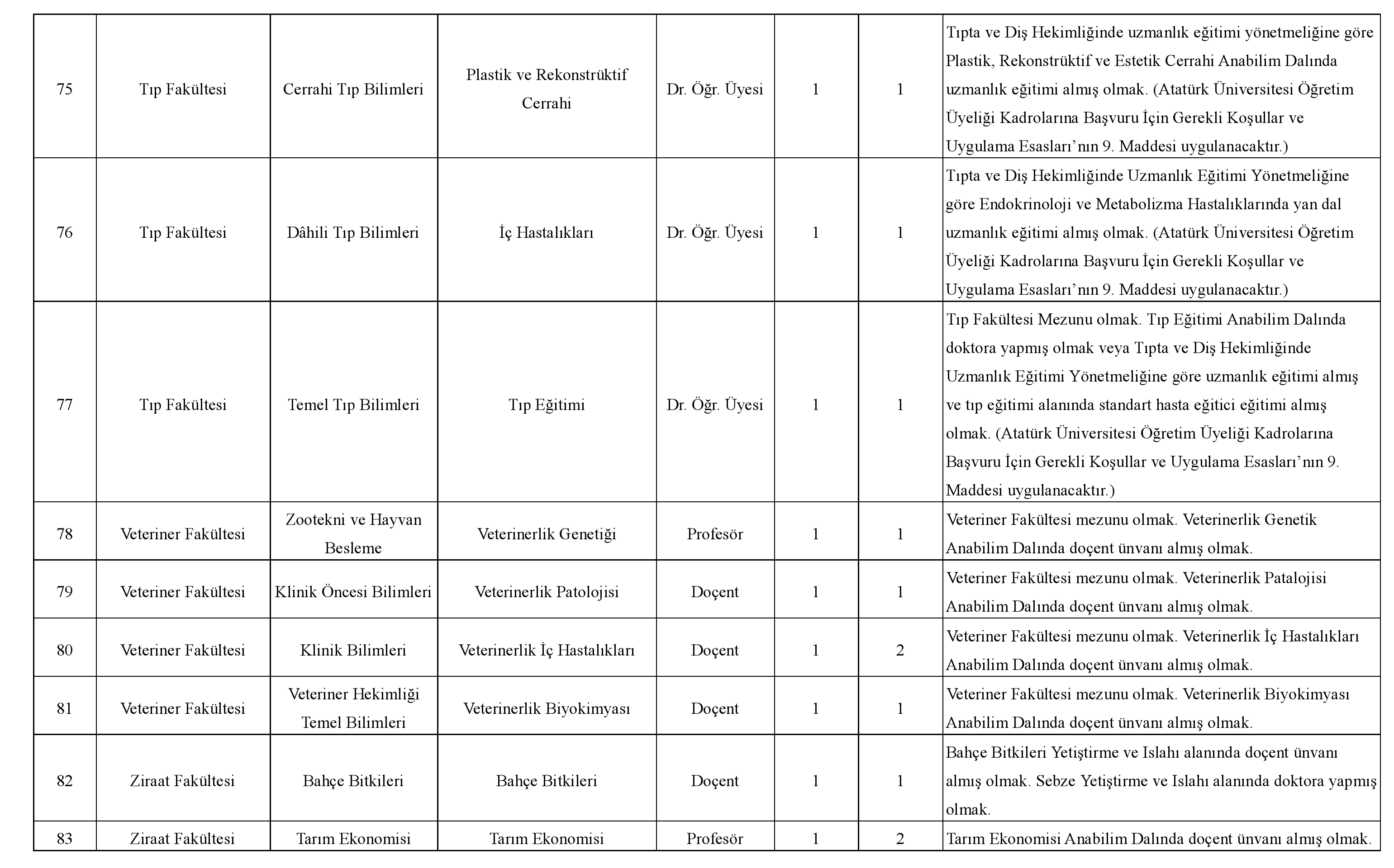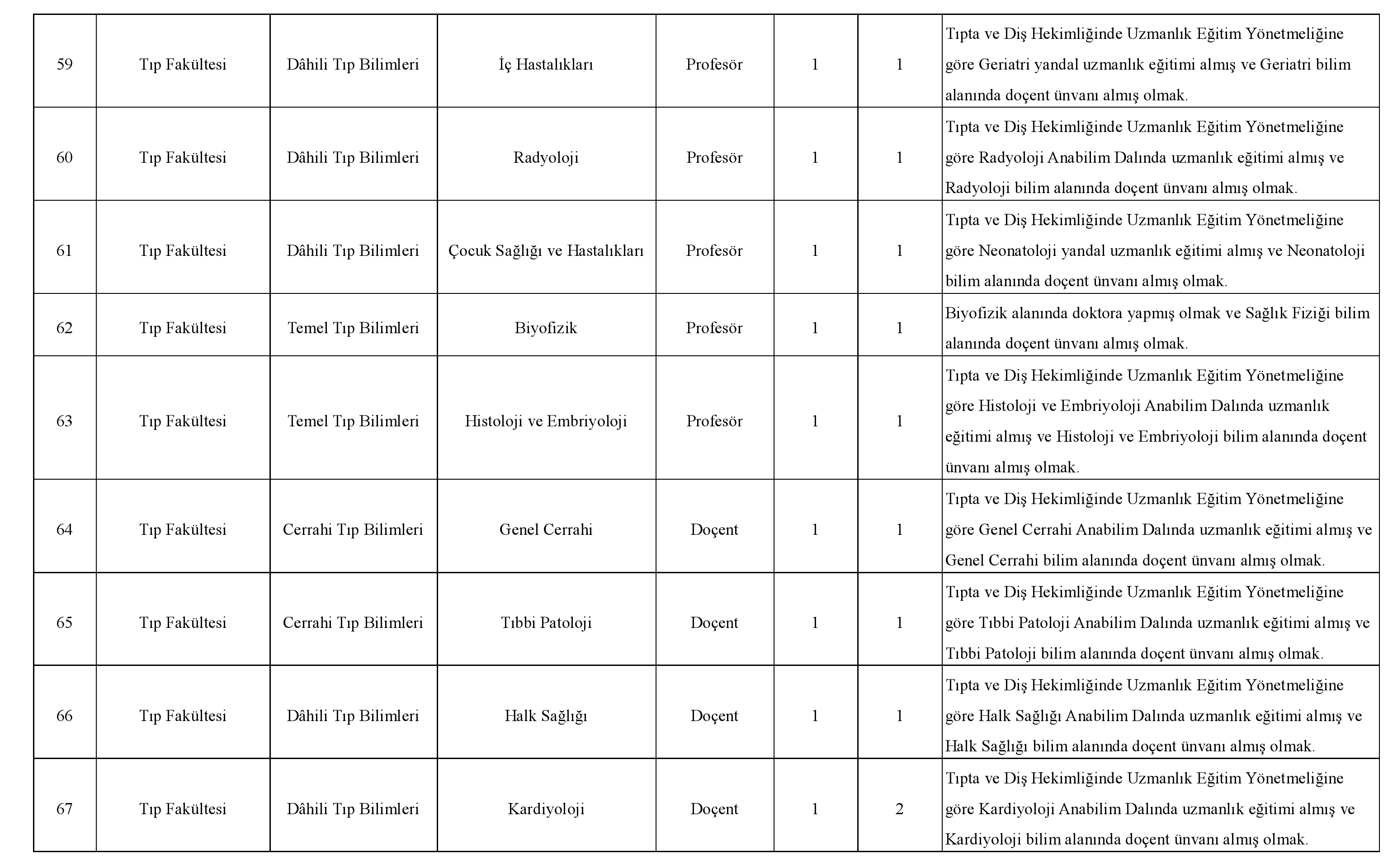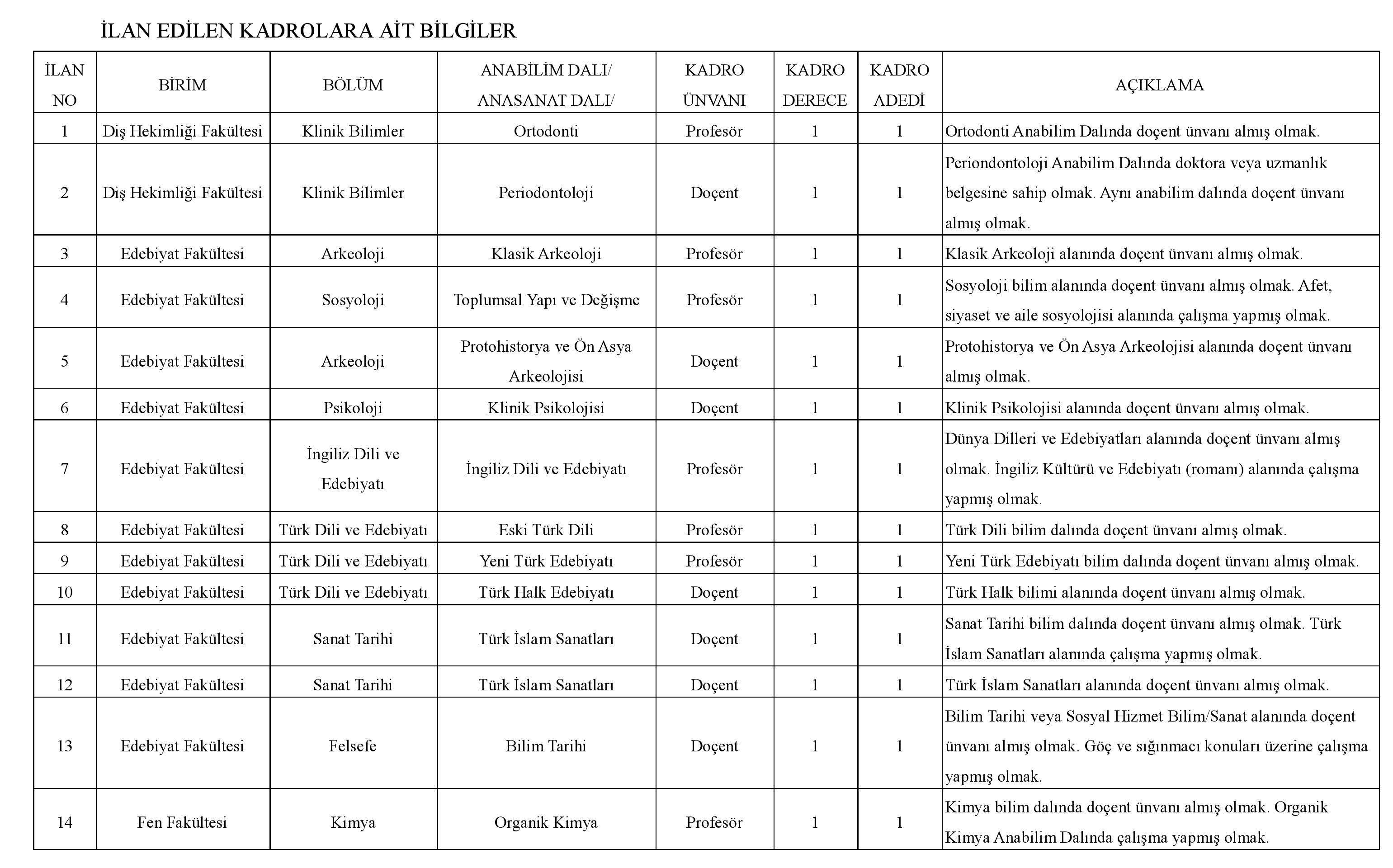 NOT: Profesör kadrosundakiler doçent ve doktor öğretim üyesi kadrolarına, doçent ünvanı alanlar ise doktor öğretim üyesi kadrosuna başvuramazlar.