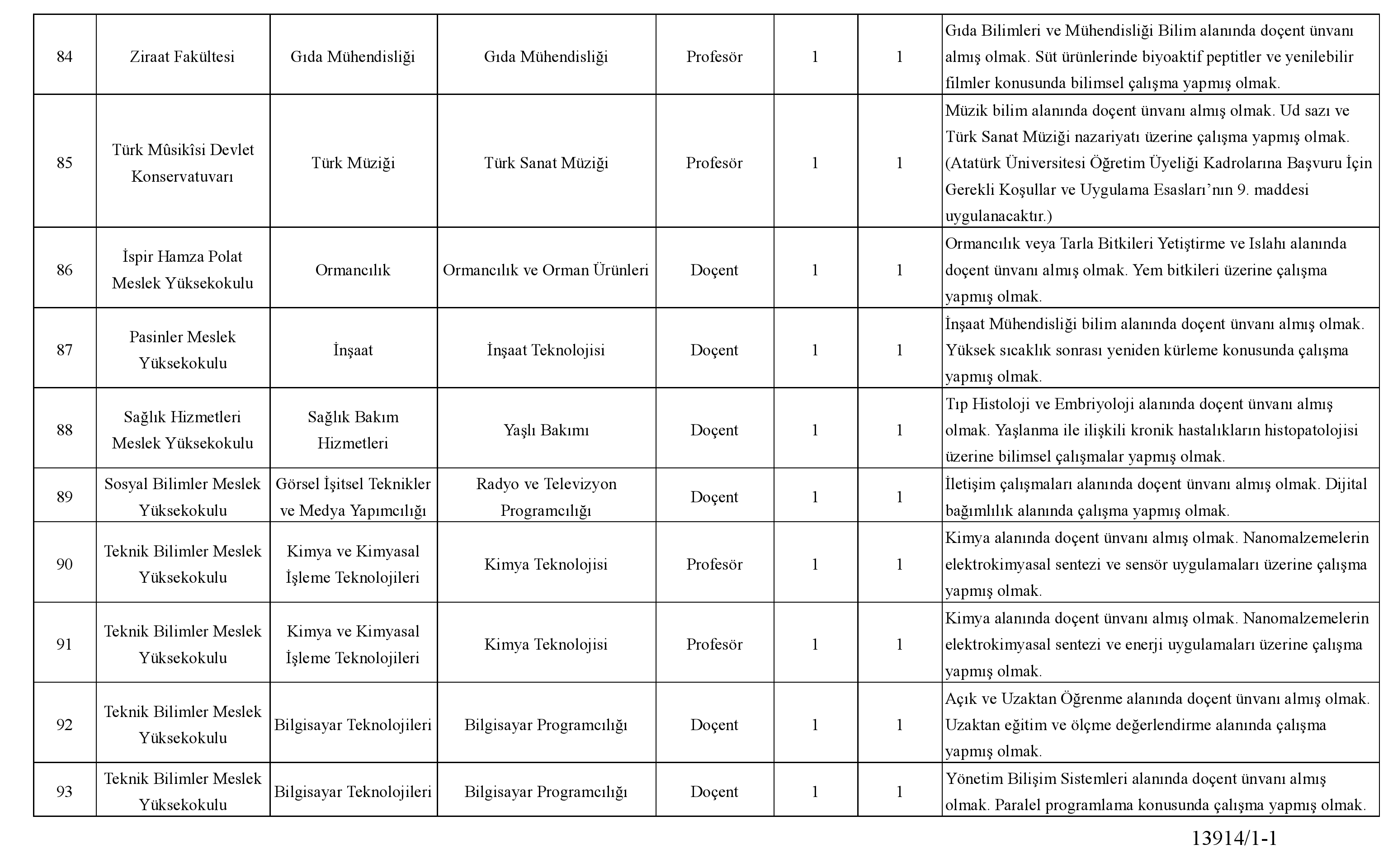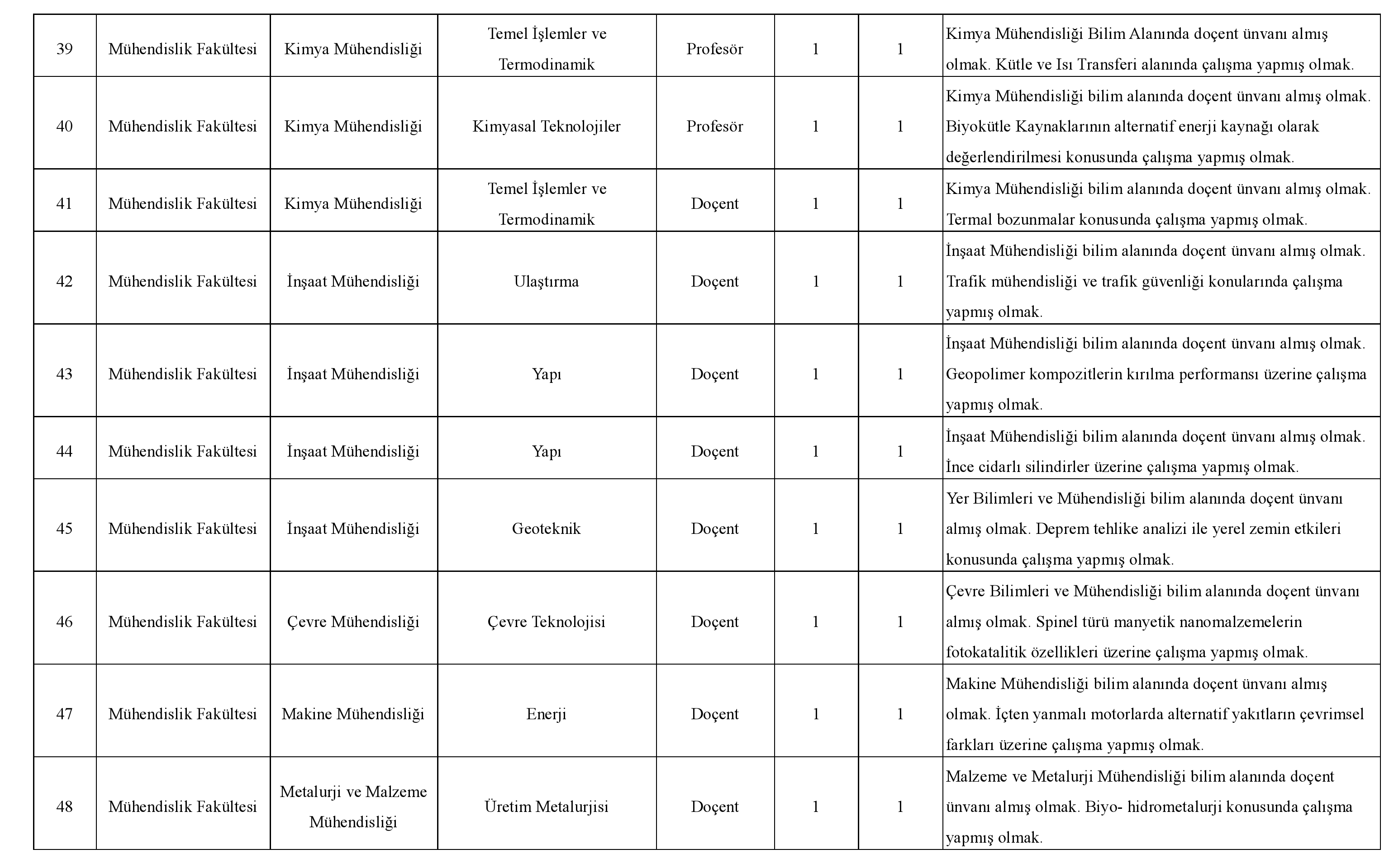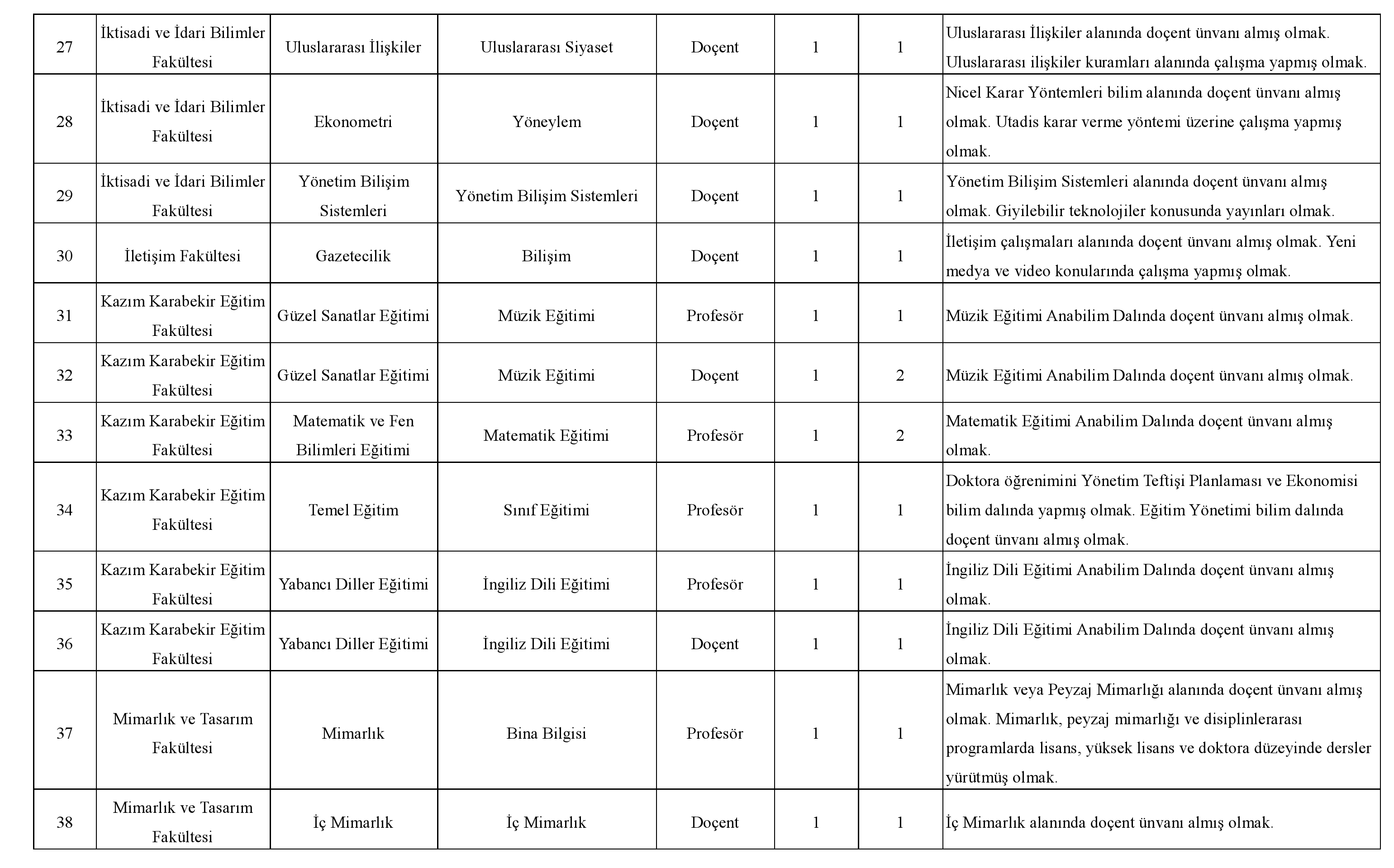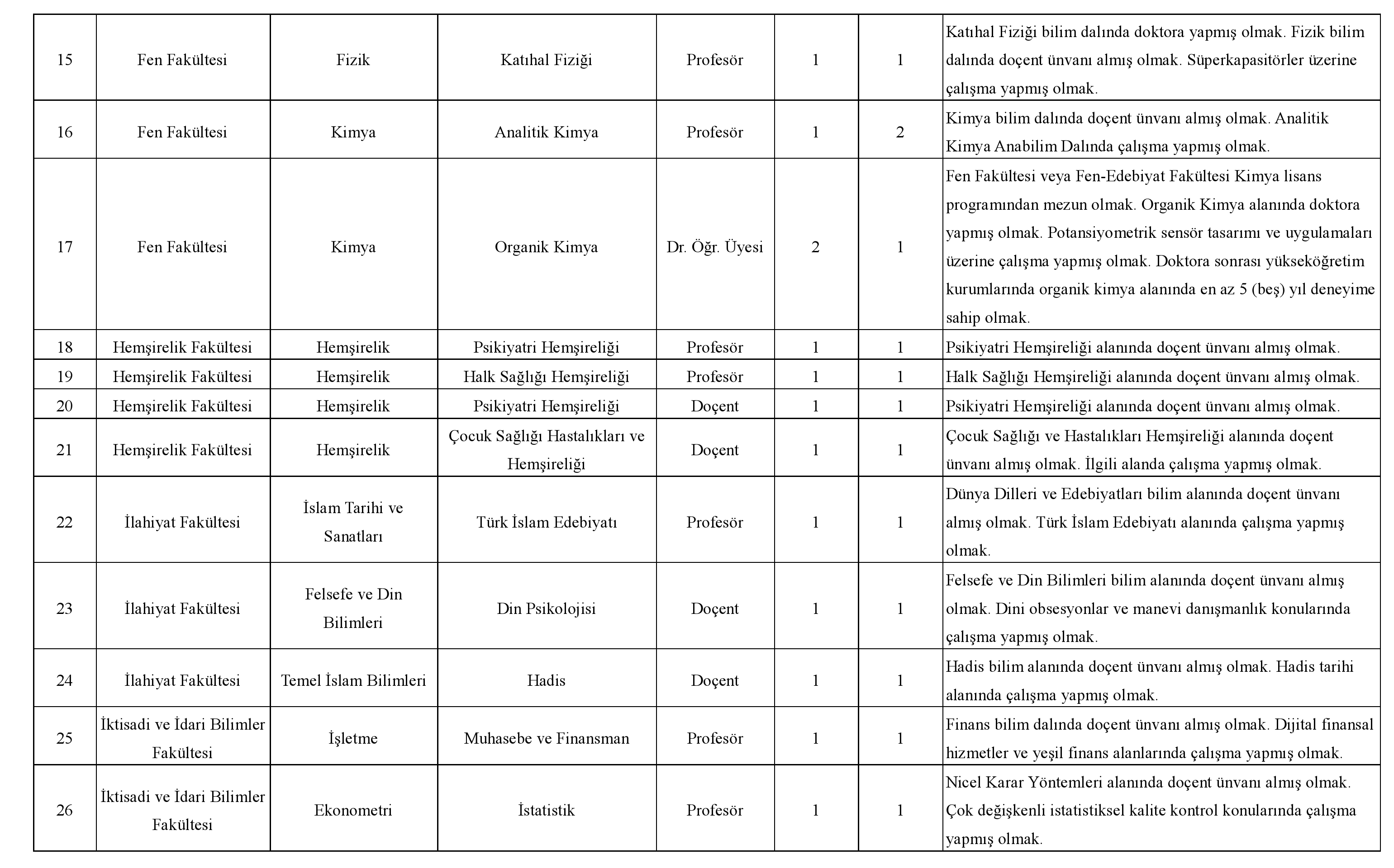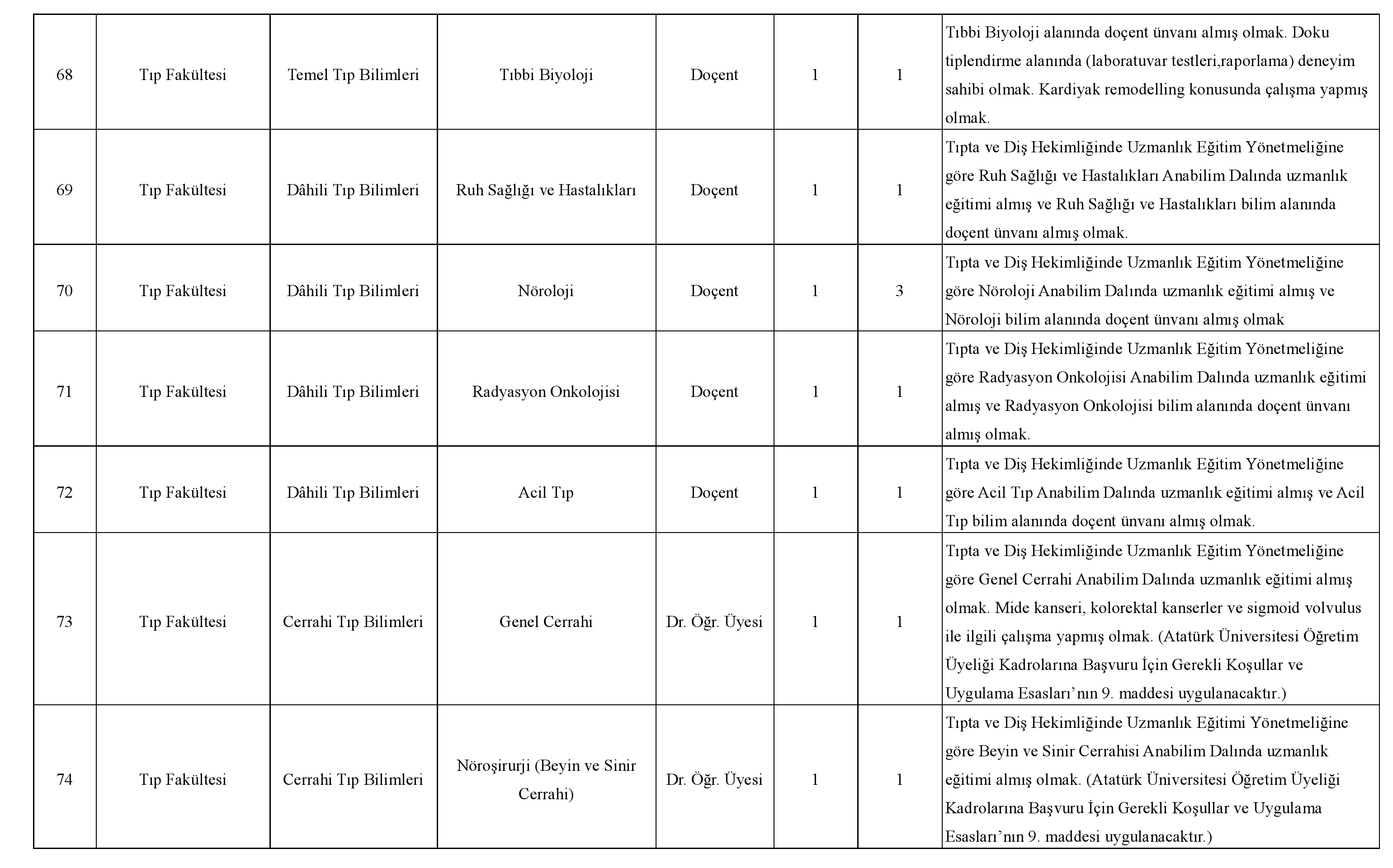 NOT: Profesör kadrosundakiler doçent ve doktor öğretim üyesi kadrolarına, doçent ünvanı alanlar ise doktor öğretim üyesi kadrosuna başvuramazlar.