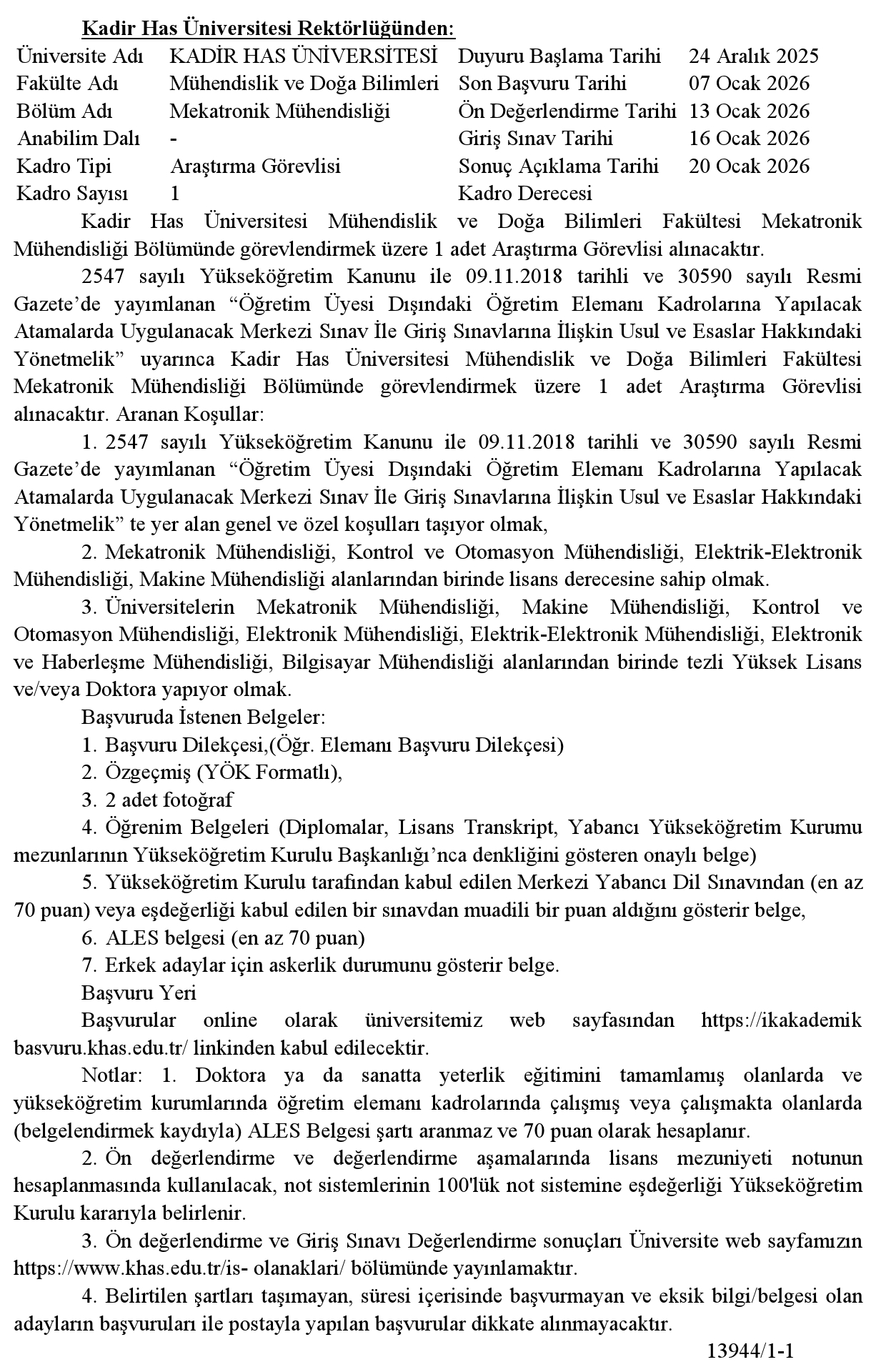 Ana sayfaAkademik İlanlar (Vakıf) Kadir Has Üniversitesi Öğretim Elemanı Alım İlanı Kadir Has Üniversitesi Öğretim Elemanı Alım İlanı. Son başvuru tarihi 7 Ocak 2026 Kaynak : Resmi Gazete İlan Giriş : 24 Aralık 2025 00:24, Son Güncelleme : 24 Aralık 2025 00:21 Yazdır Yorumlar (0) Abone Ol