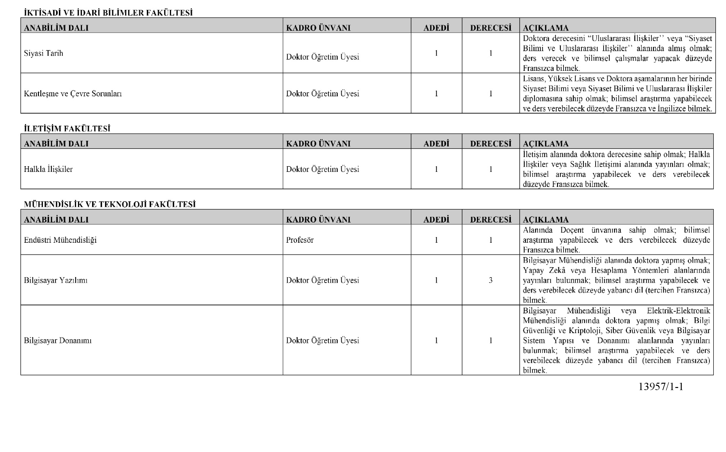 ÖĞRETİM ÜYESİ ALIM İLANI