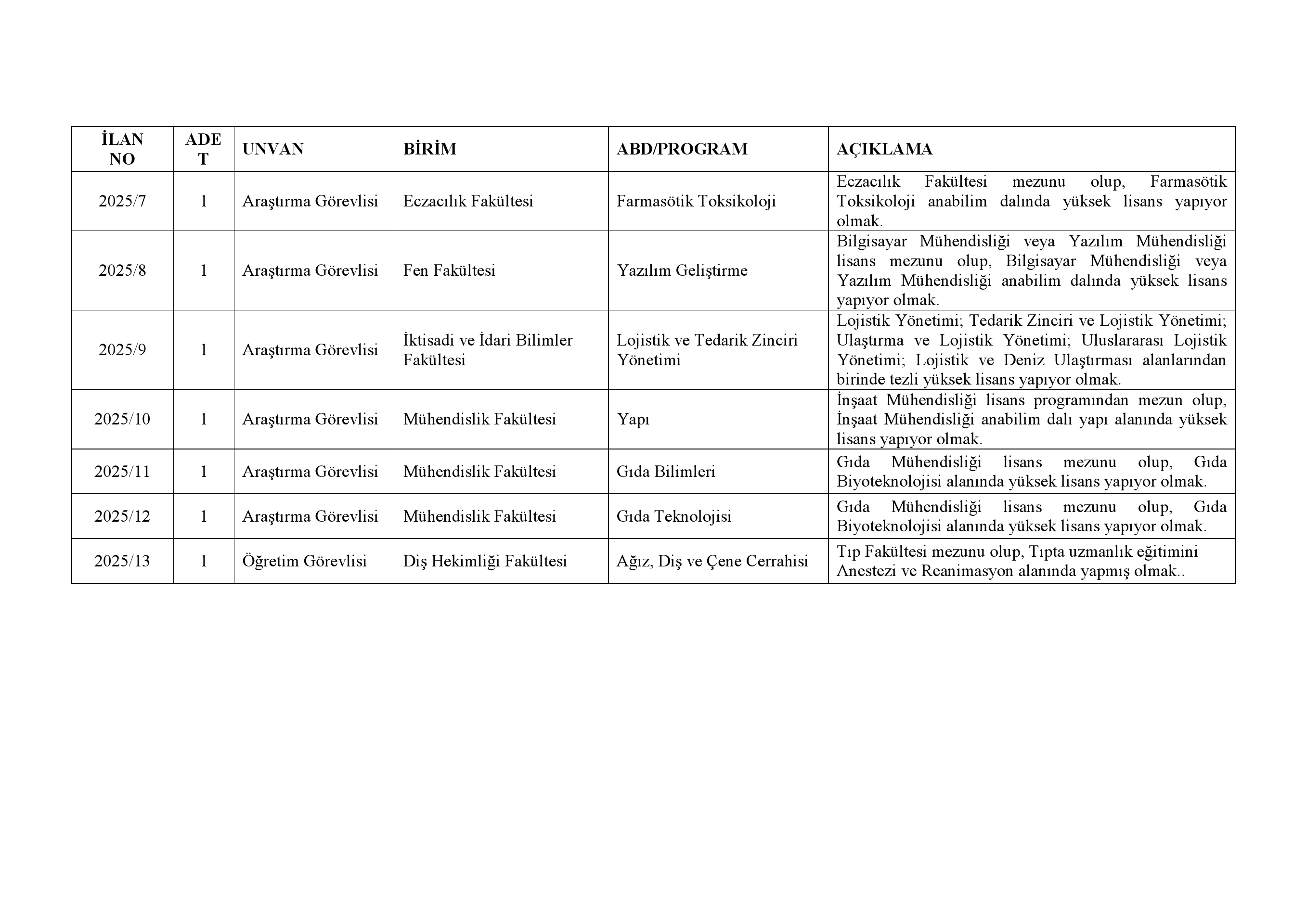6. Adayların tek bir kadro ilanına müracaat etmeleri gerekmektedir. Birden fazla kadroya başvuran adayların her iki başvurusu da değerlendirmeye alınmayacaktır.