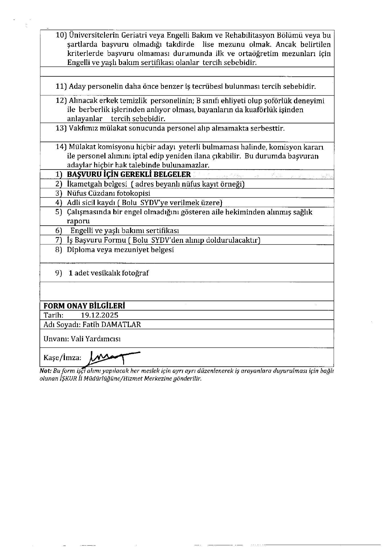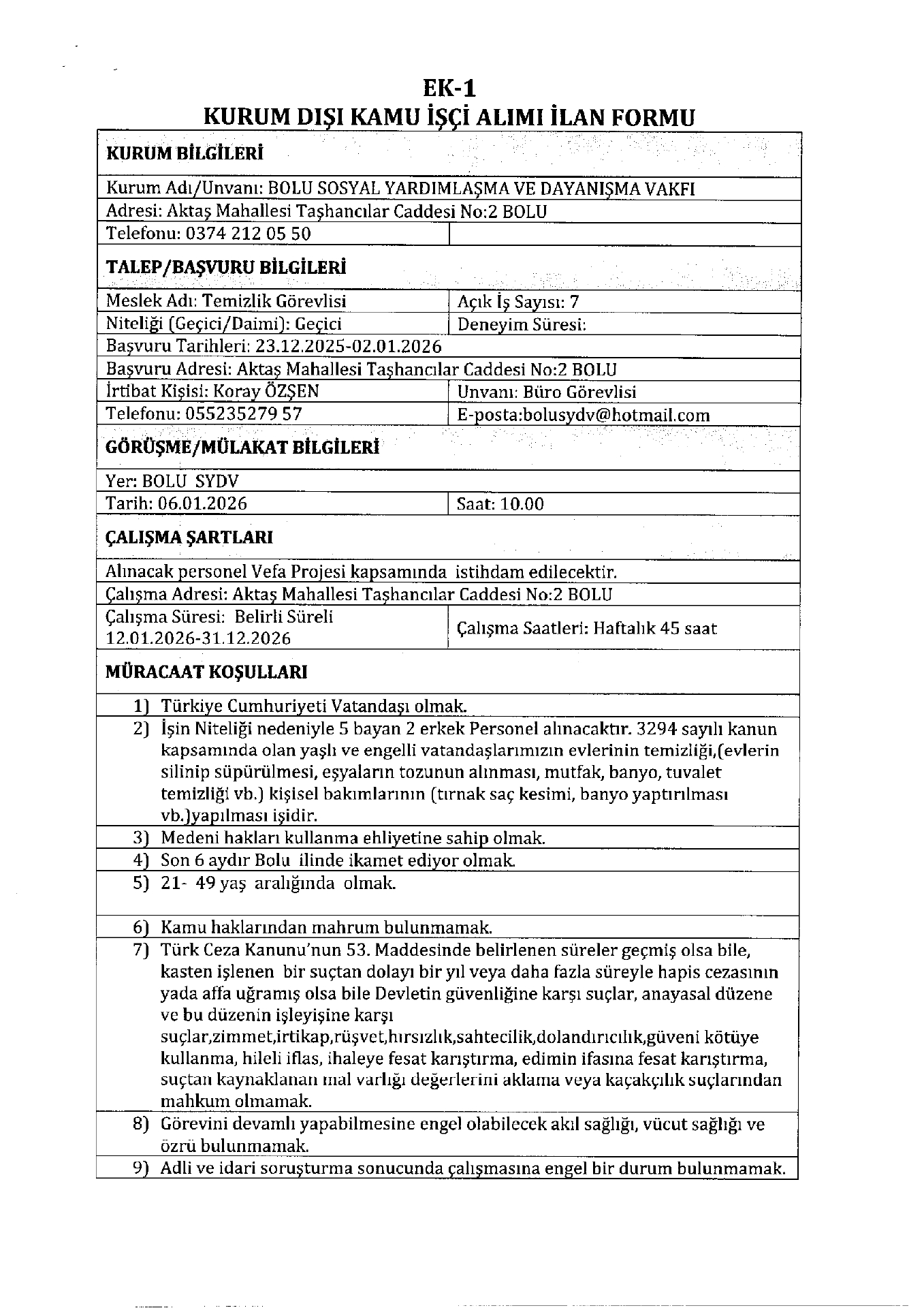 Bolu SYDV Geçici 7 İşçi Alacak. Son başvuru tarihi 2 Ocak 2026