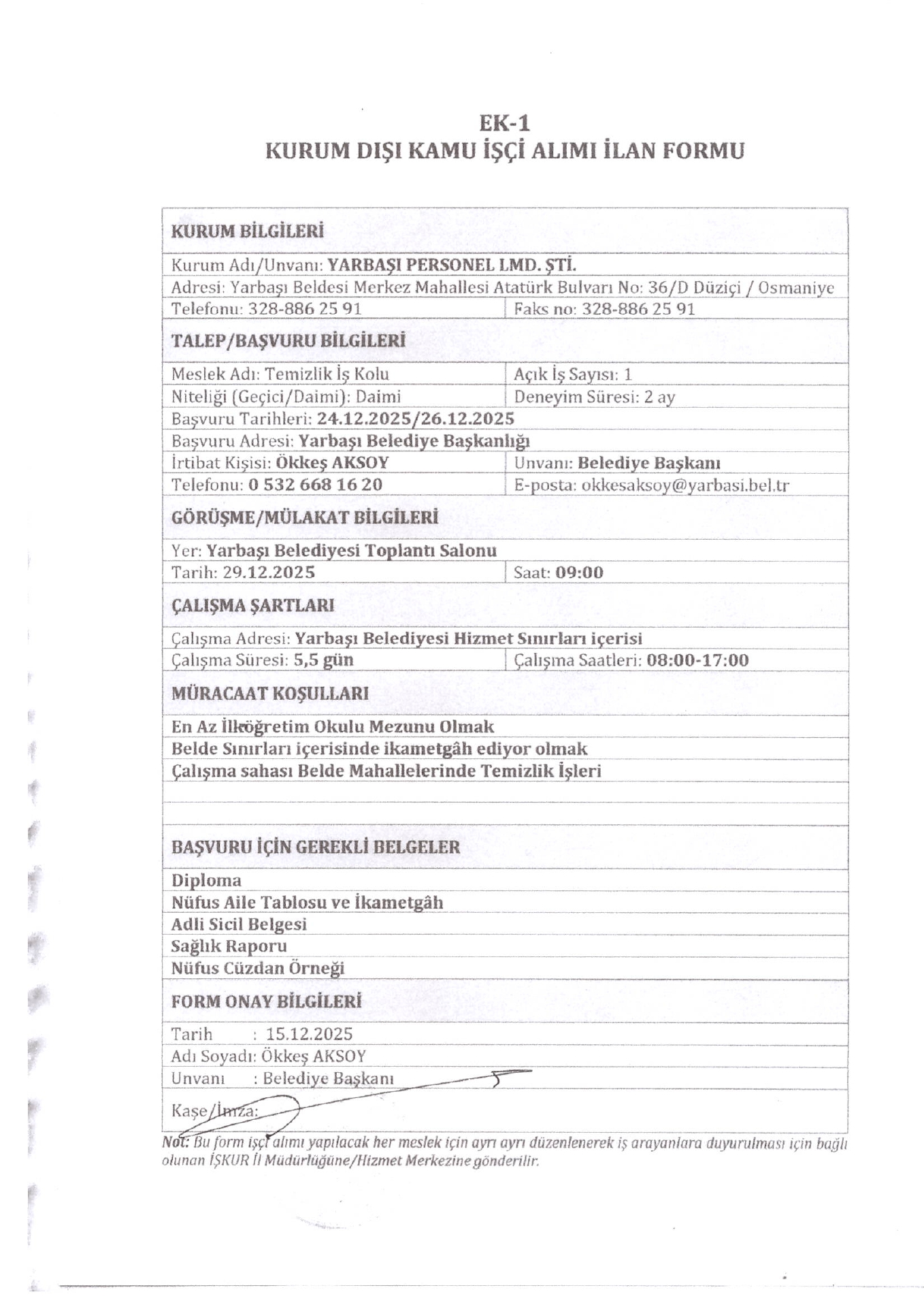 Ana sayfaDaimi İşçi İlanları Osmaniye Yarbaşı Personel 1 İşçi Alacak Osmaniye Yarbaşı Personel 1 İşçi Alacak. Son başvuru tarihi 26 Aralık 2025 Kaynak : İşkur İlan Giriş : 25 Aralık 2025 01:06, Son Güncelleme : 25 Aralık 2025 01:56 Yazdır Yorumlar (0) Abone Ol