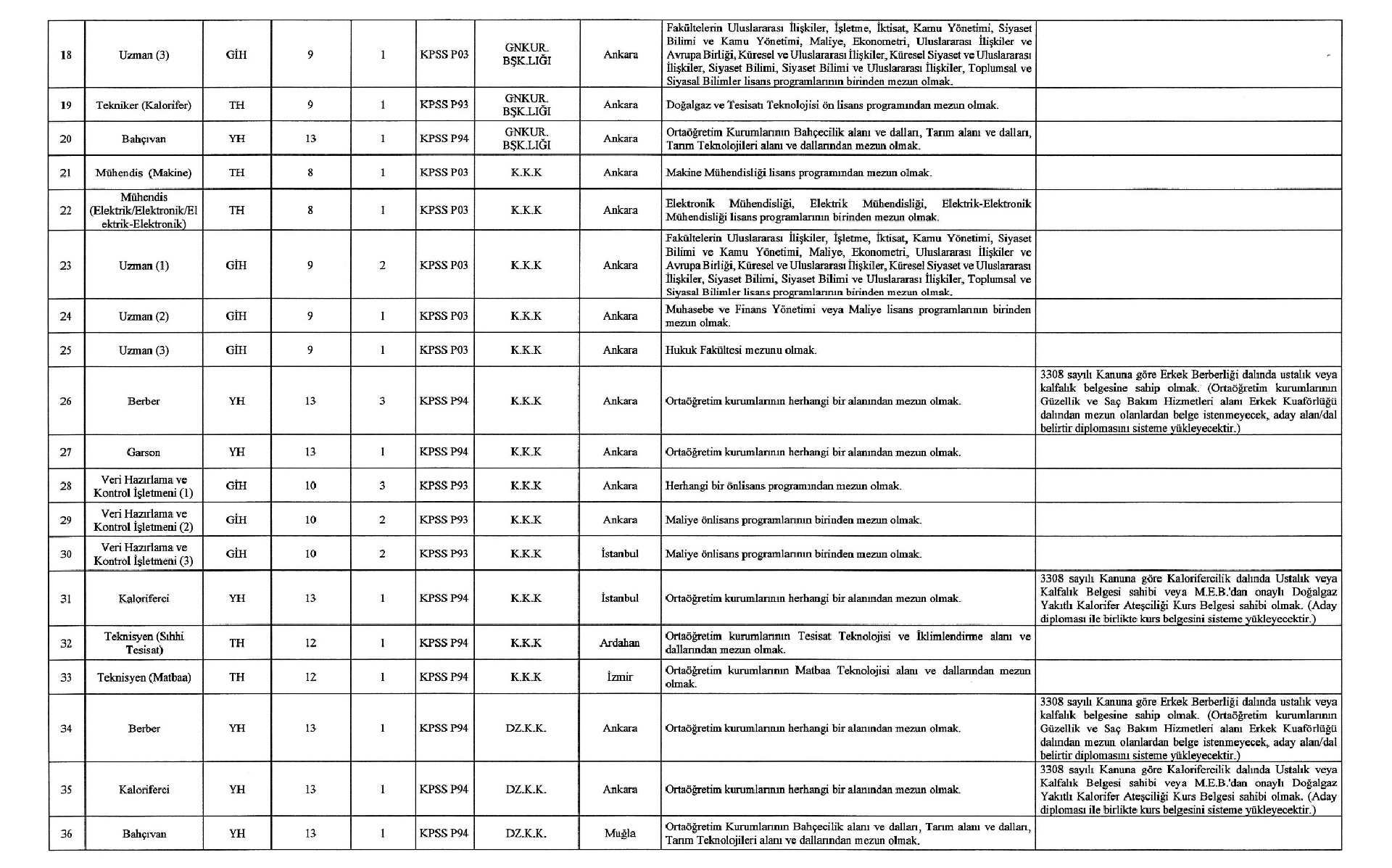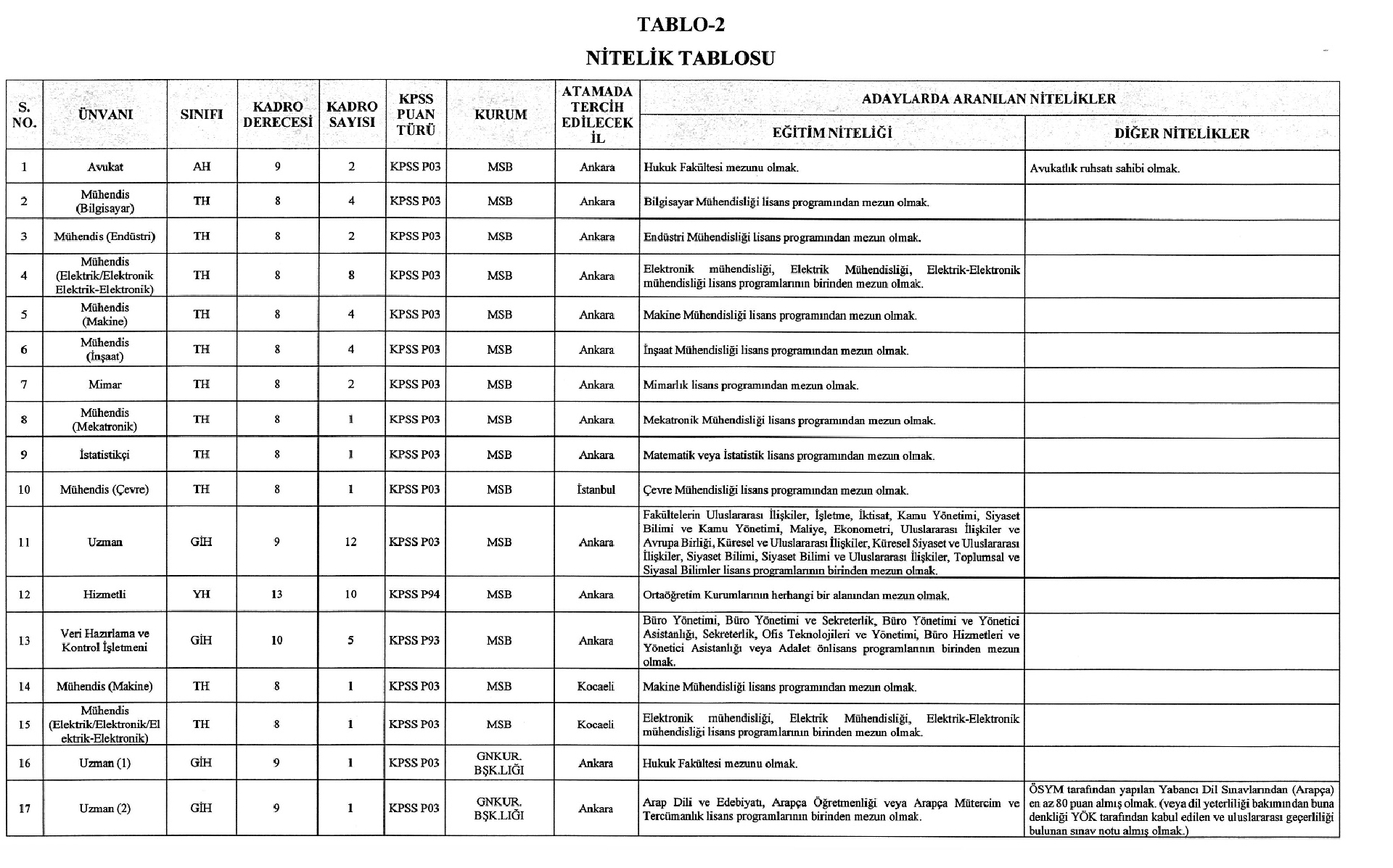 d) Nitelik tablosunda belirtilen bölümlere, denkliği Yükseköğretim Kurulu Karan ile kabul edilen bölümlerden mezun olan adaylar da başvuru yapabilecektir.