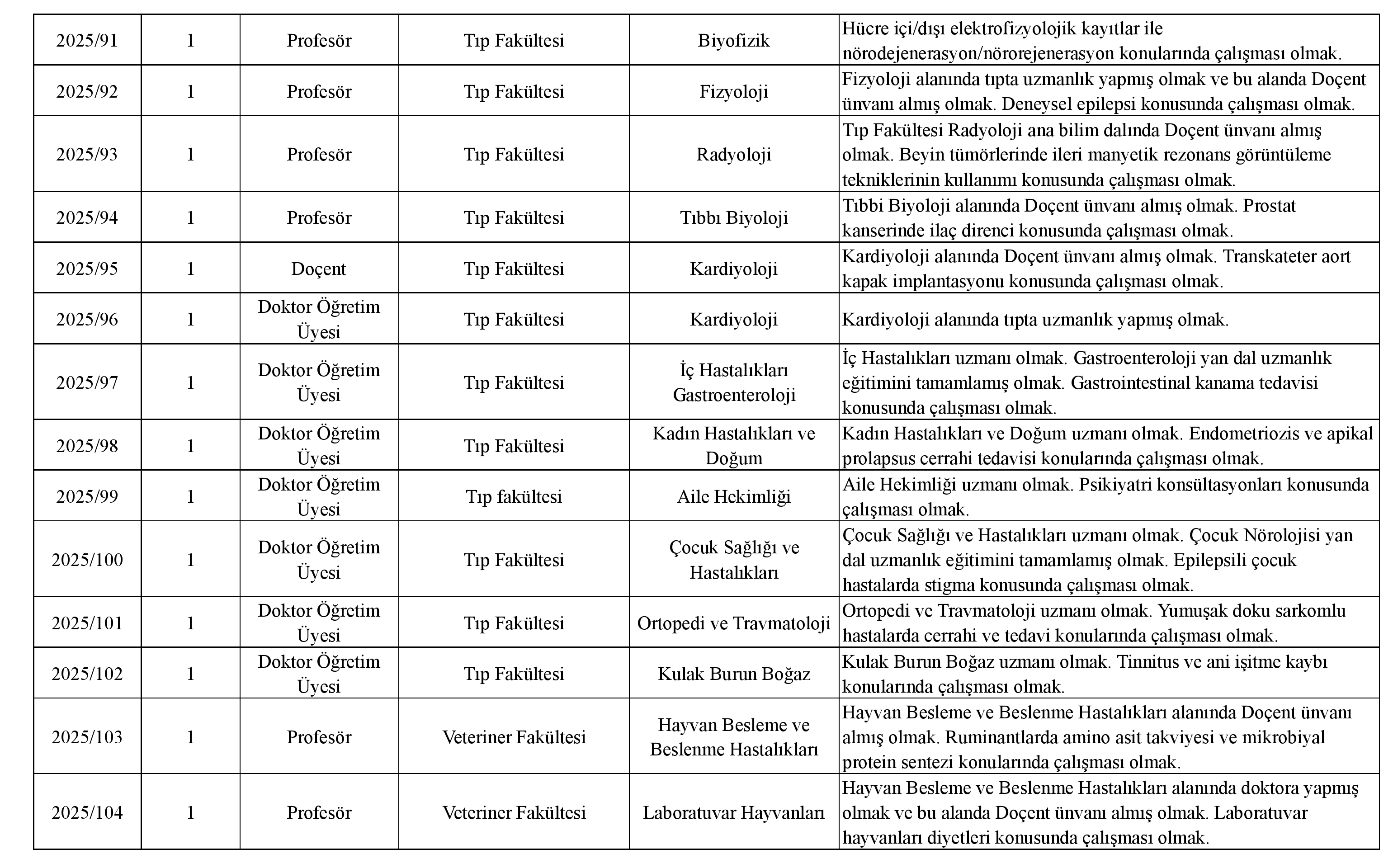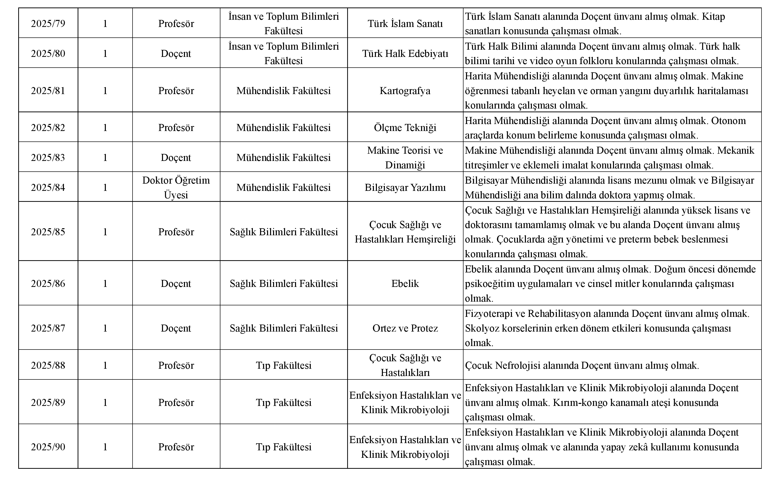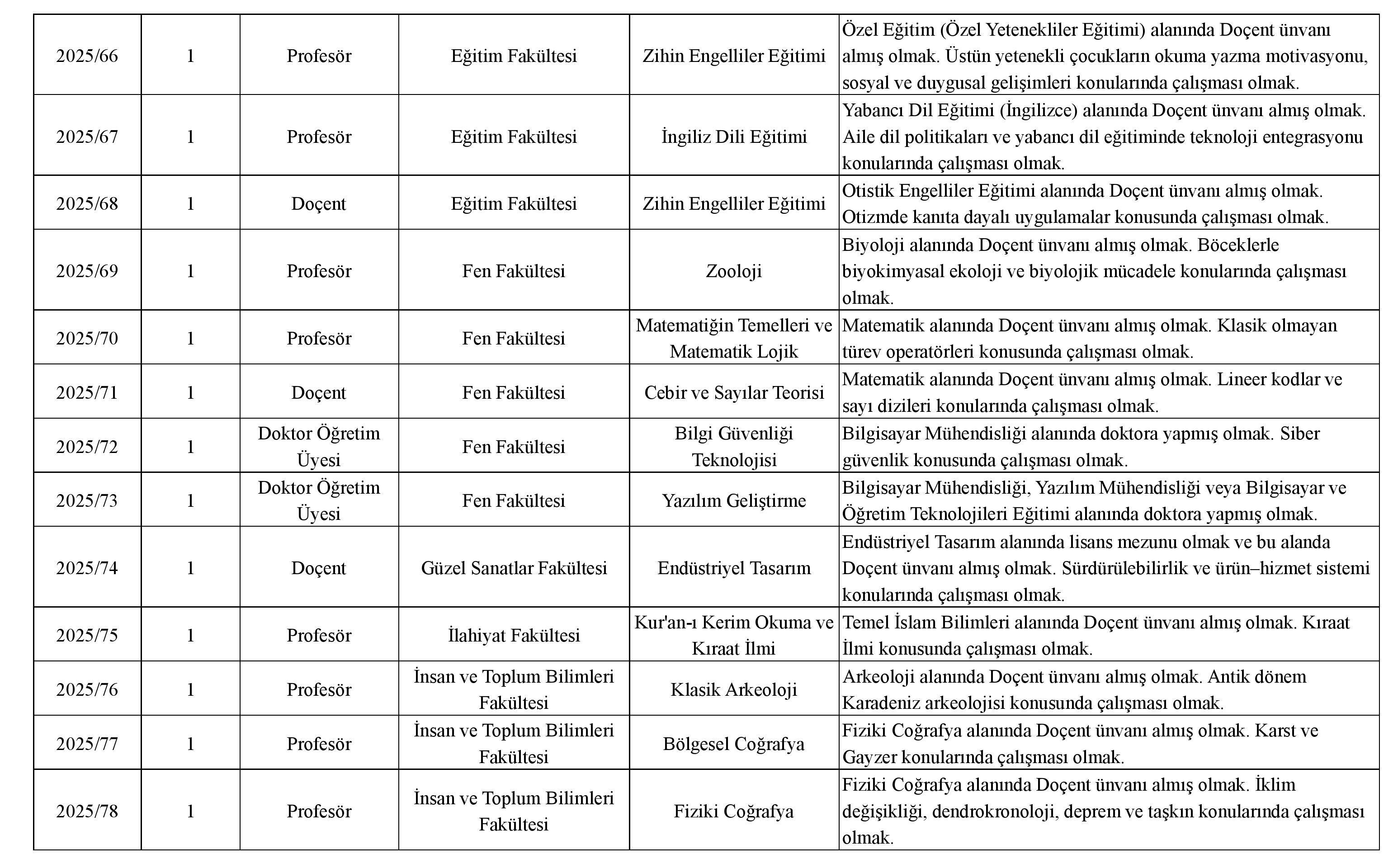 Üniversitemize 2547 sayılı Kanun Hükümlerine göre Öğretim Üyesi alınacaktır. Adayların 657 sayılı Kanunun 48. maddesinde ve diğer ilgili mevzuatlardaki şartları taşımaları gerekmektedir.