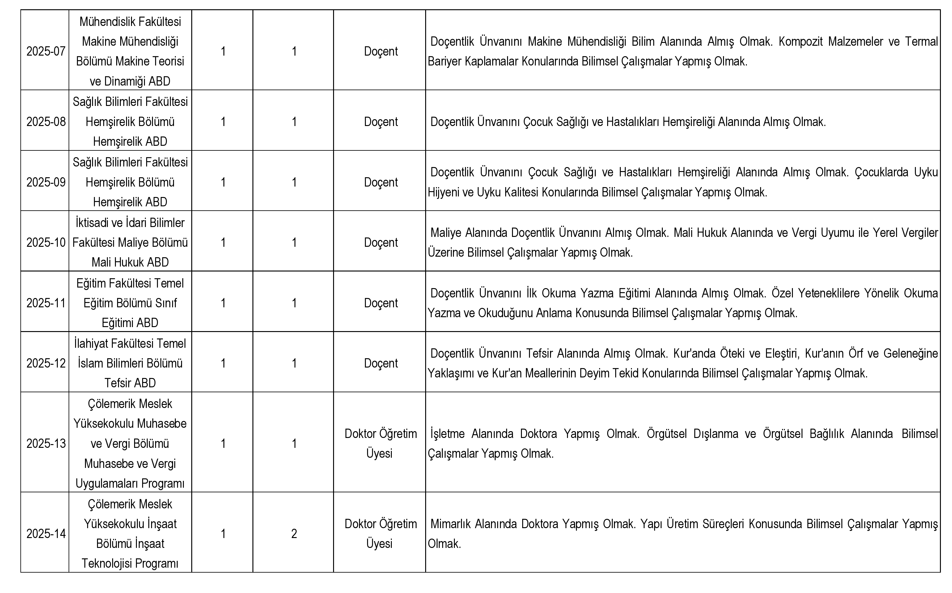 A) ÖĞRETİM ÜYESİ KADROLARINA AİT İLAN