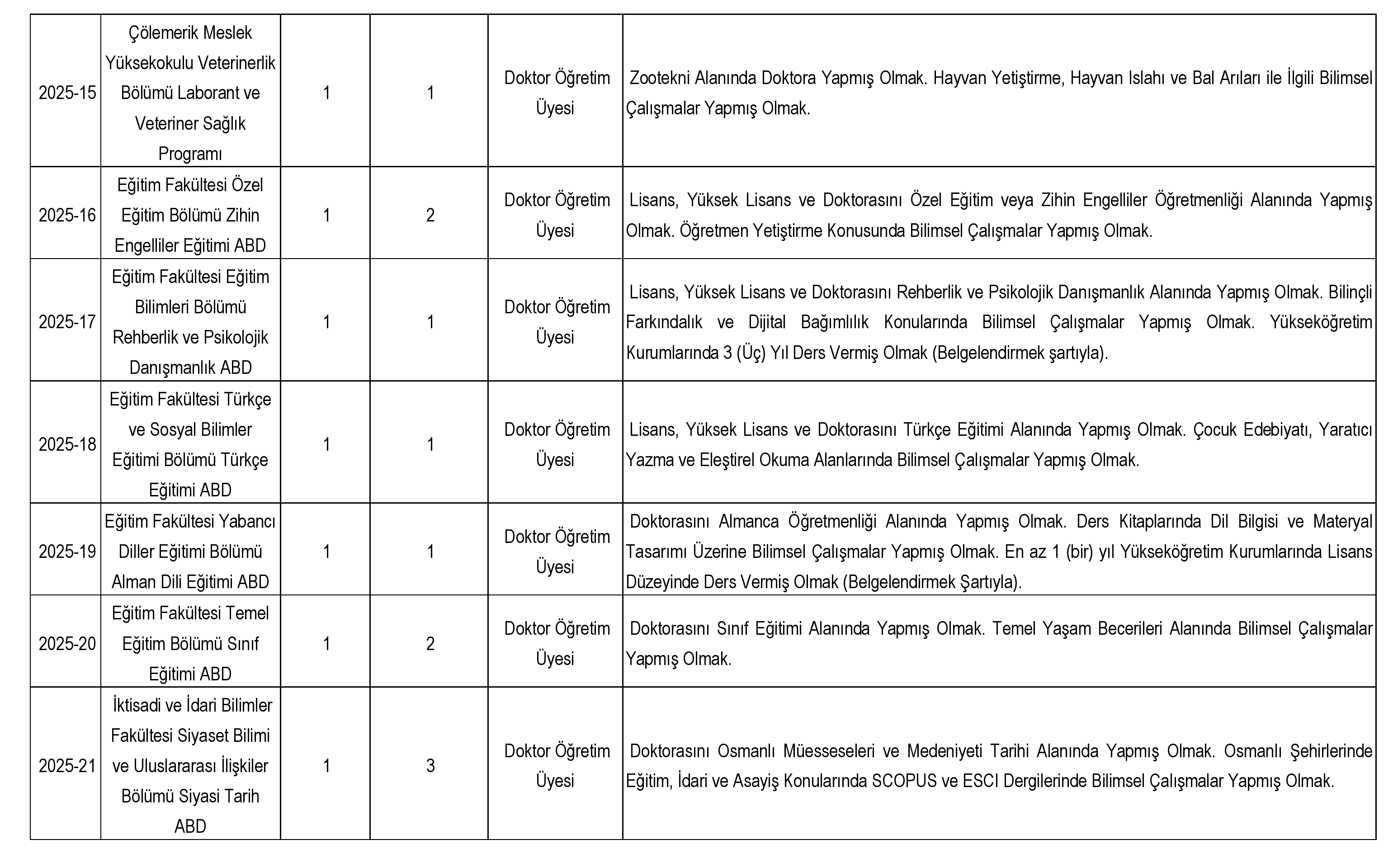 ç) Üniversitelerarası Kurul (ÜAK) veya Yurtdışındaki herhangi bir kurumdan (ÜAK denkliği olsa bile) Doçentlik belgesini almış olanlar Doktor Öğretim Üyesi kadrolarına yapılan başvurular geçersiz sayılacaktır.