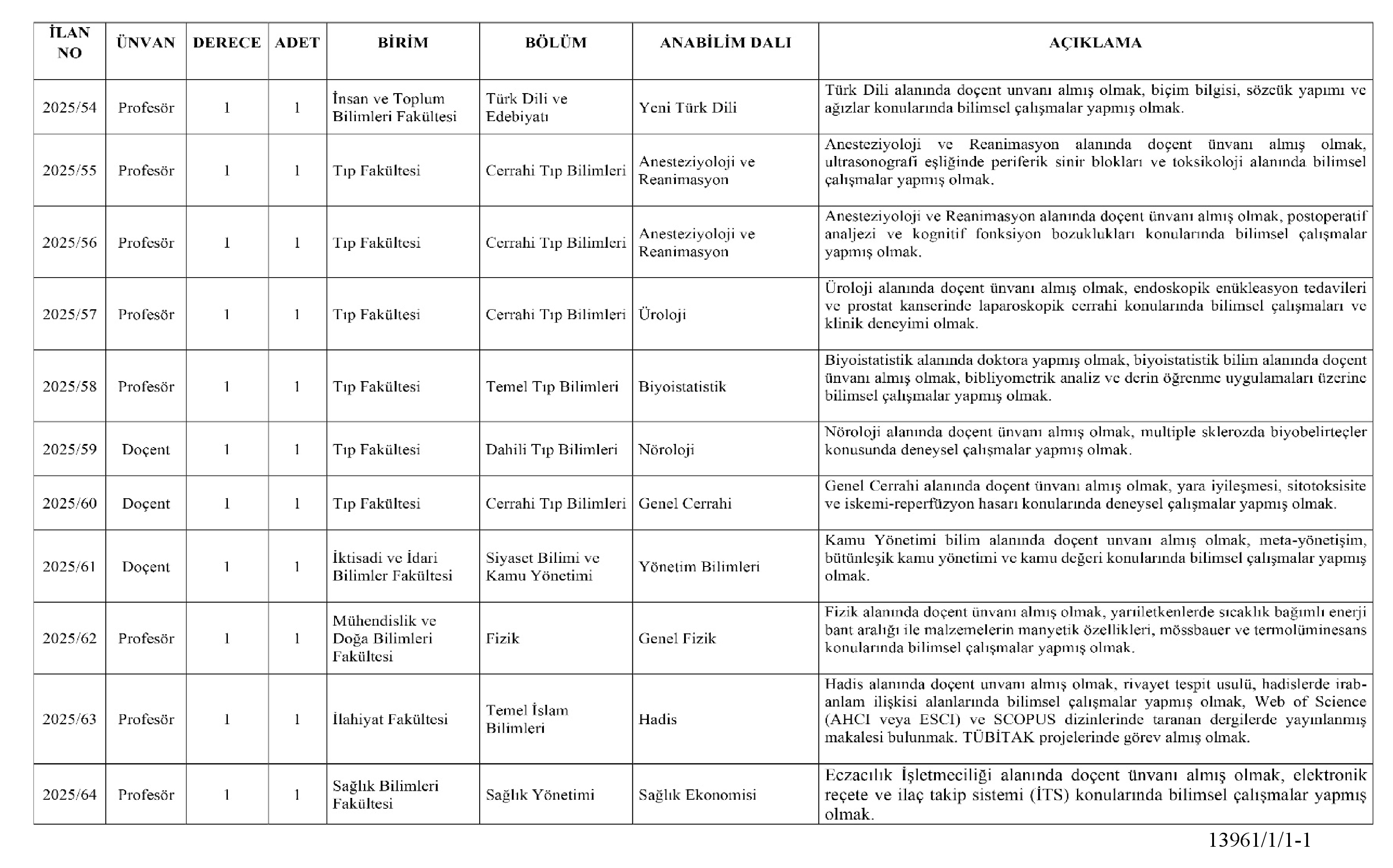 ÖĞRETİM ÜYESİ ALIM İLANI