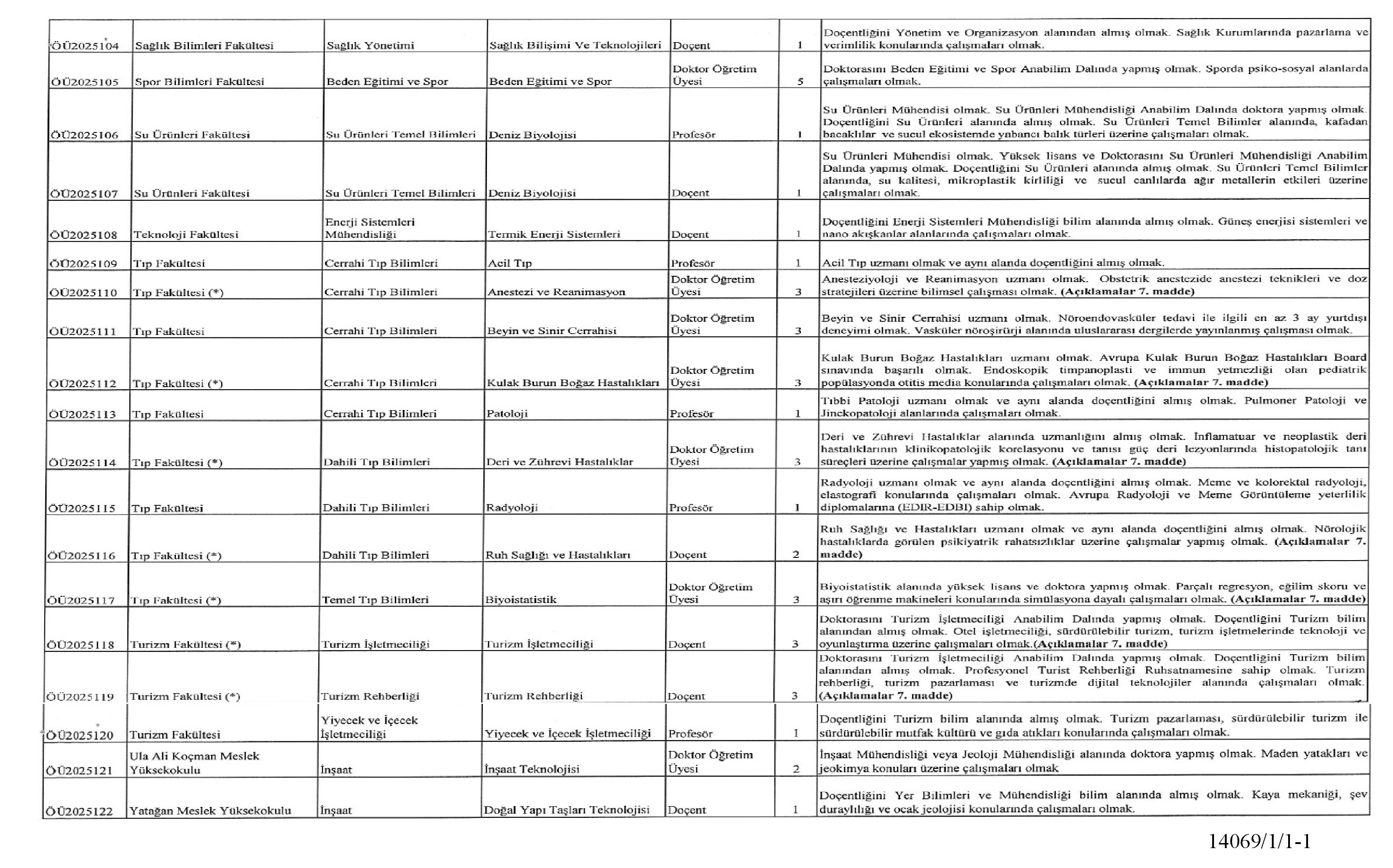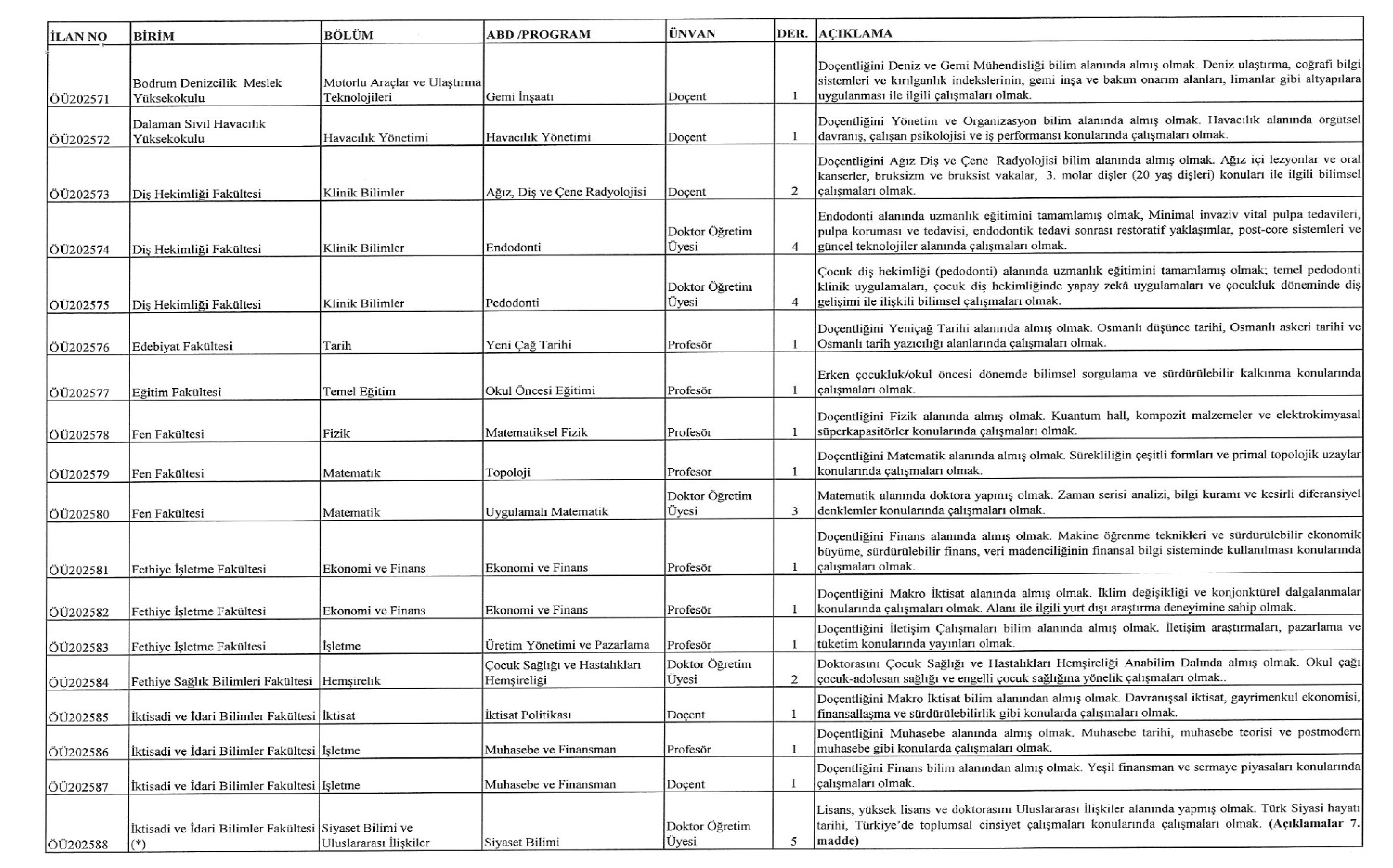Üniversitemizin aşağıda belirtilen boş kadrolarına 2547 sayılı Yükseköğretim Kanunu, Öğretim Üyeliğine Yükseltilme ve Atanma Yönetmeliği ile Muğla Sıtkı Koçman Üniversitesi Öğretim Üyeliğine Yükseltilme ve Atanma Koşulları Yönergesi (bakınız: (https://pcrsoncl.niu.edu.tr/) hükümleri doğrultusunda öğretim üyesi alınacaktır.