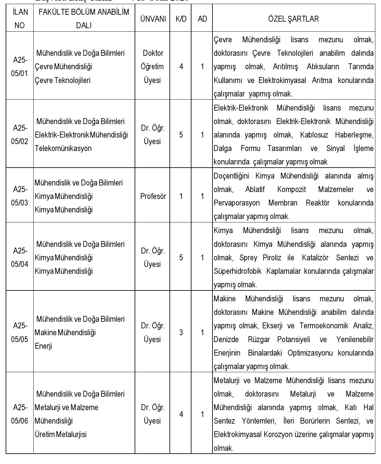 Başvuru Bitiş Tarihi : 13 Ocak 2026