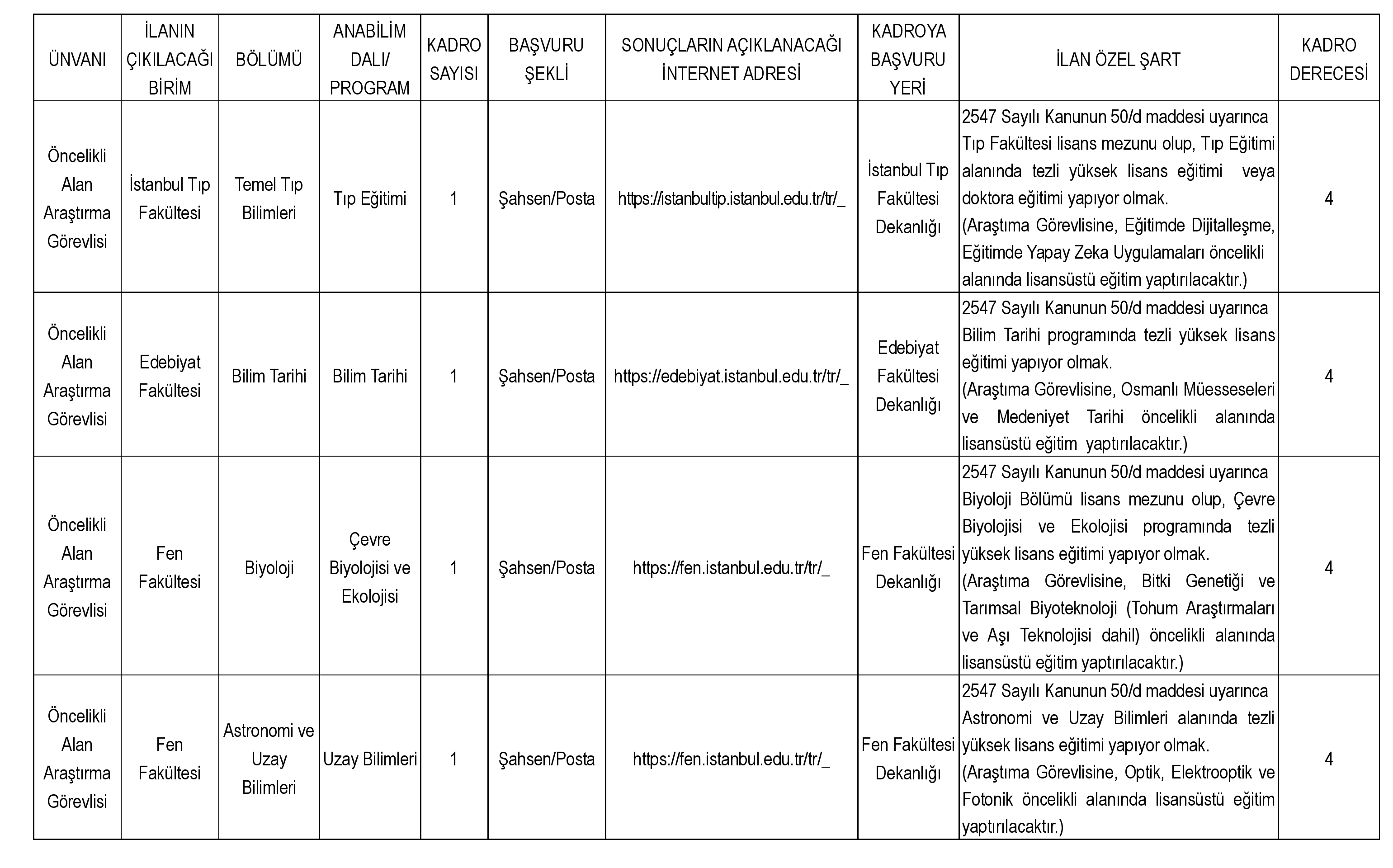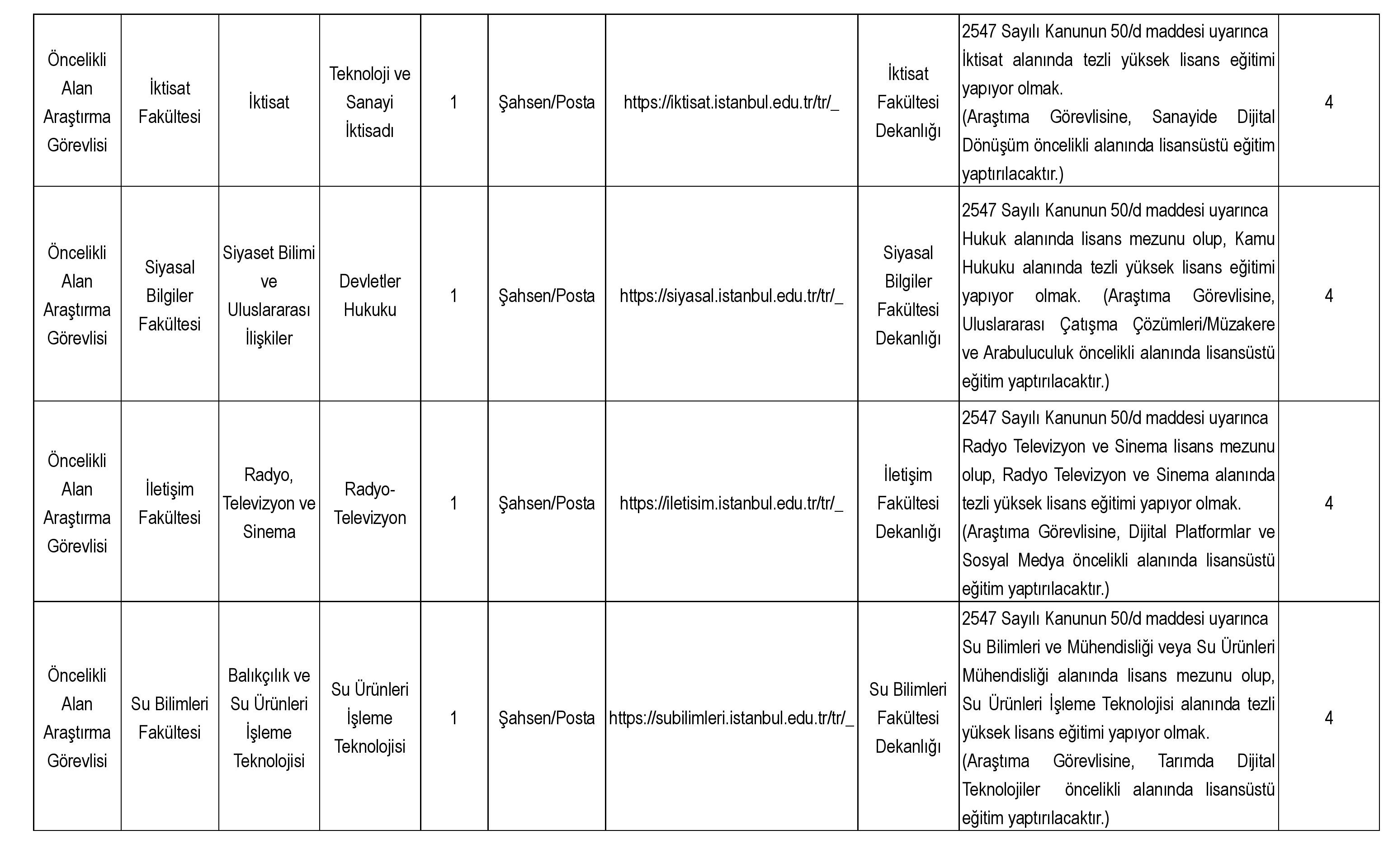 İstanbul Üniversitesi Öğretim Elemanı Alım İlanı