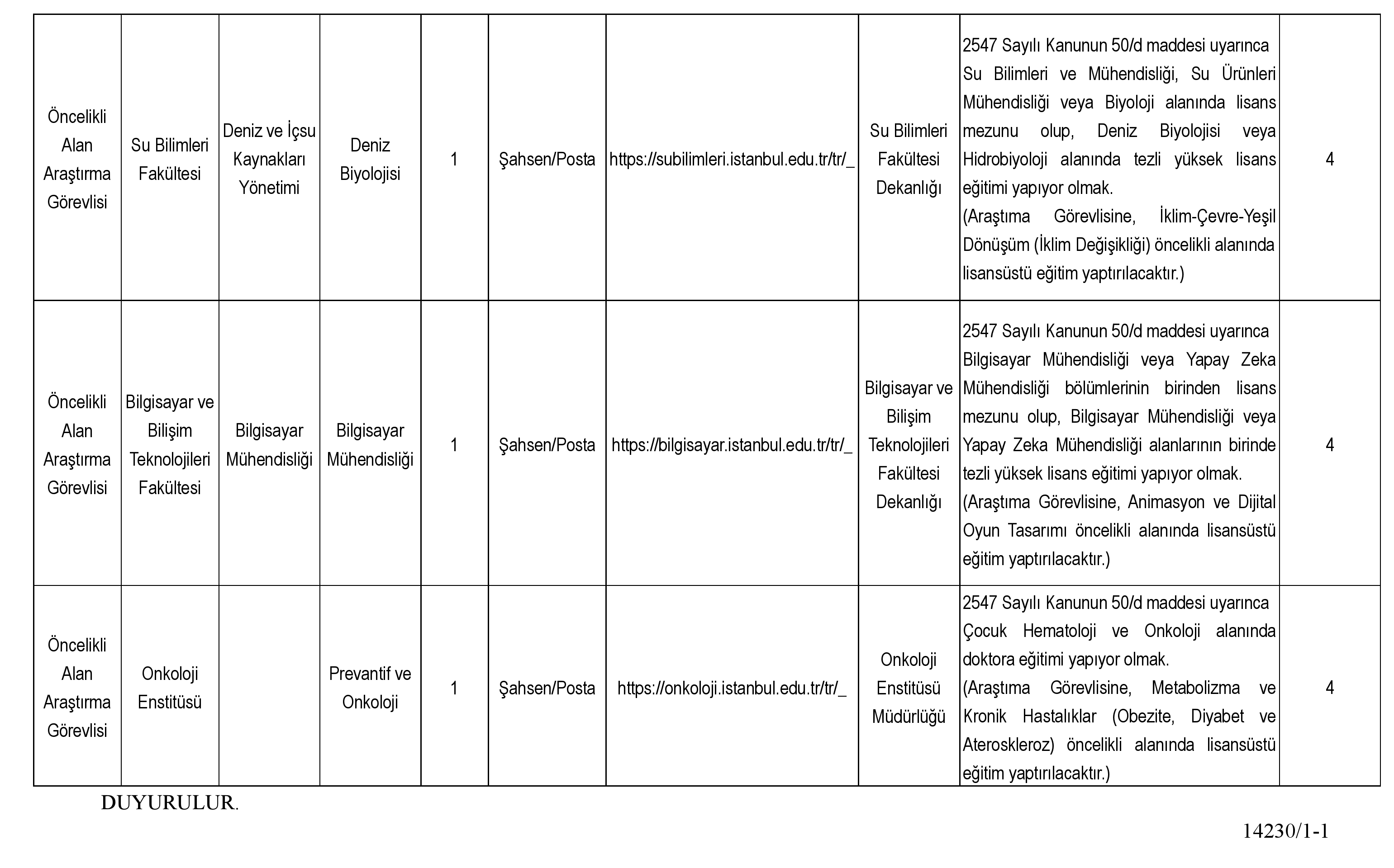 11. İlanımıza http://www.istanbul.edu.tr/ adresinden ulaşılabilir.