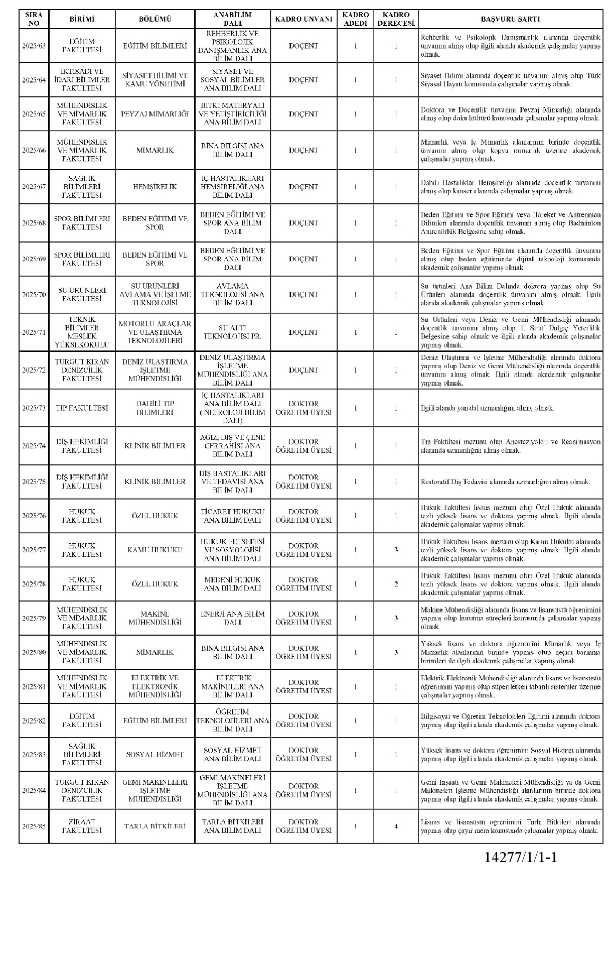 ÖĞRETİM ÜYESİ ALIM İLANI