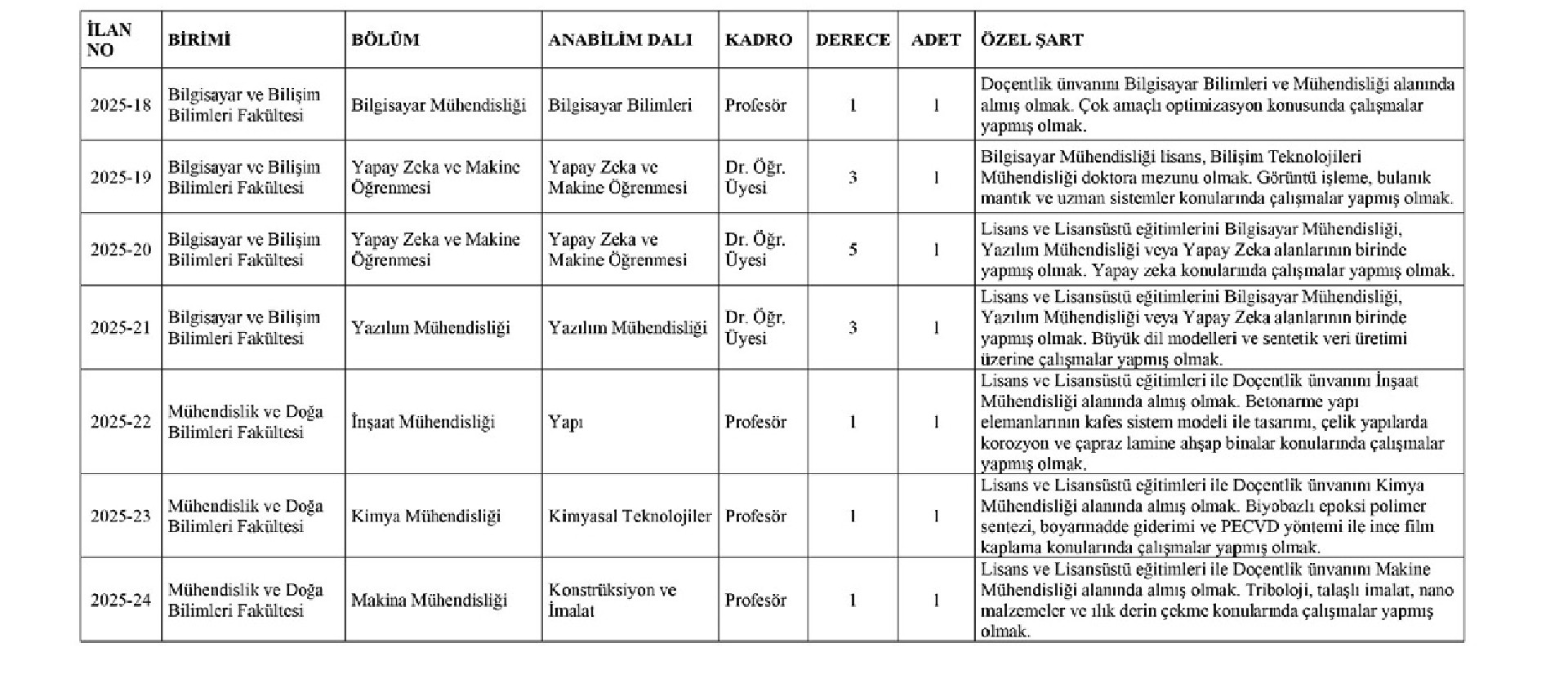 Konya Teknik Üniversitesi Öğretim Üyesi ve Elemanı Alım İlanı. Son başvuru tarihi 13 Ocak 2026