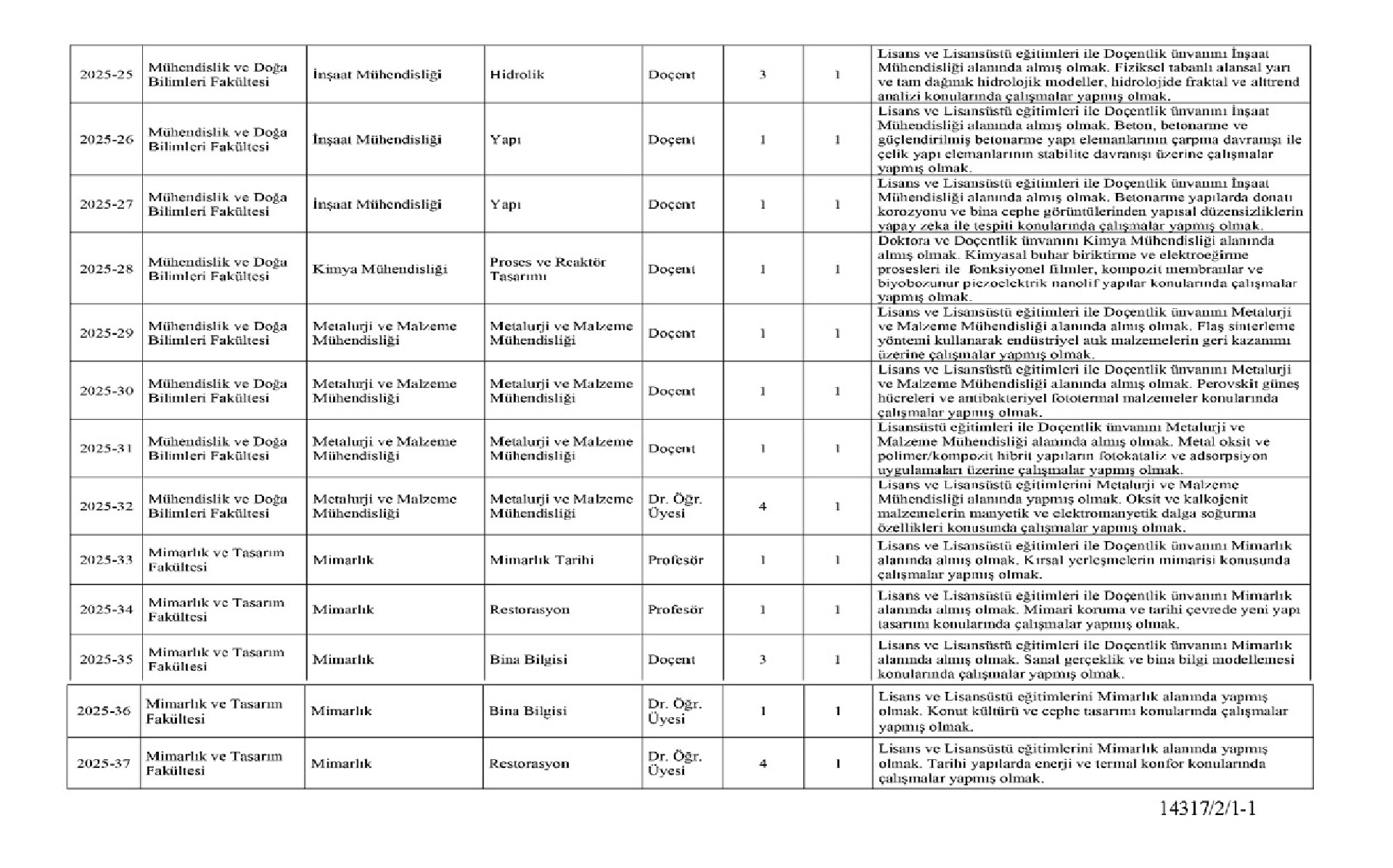 Üniversitemizin aşağıda belirlilen birimlerinde boş bulunan kadrolarına. 2547 sayılı Yükseköğretim Kanunu, öğretim Üyeliğine Yükseltilme ve Atanma Yönetmeliği hükümleri ile Yükseköğretim Kurulu Başkanlığı tarafından onaylanan yürürlükteki Konya Teknik Üniversitesi Akademik Atama - Yükseltme ölçütleri ve Uygulama Esaslarına göre öğretim üyesi alınacaktır.