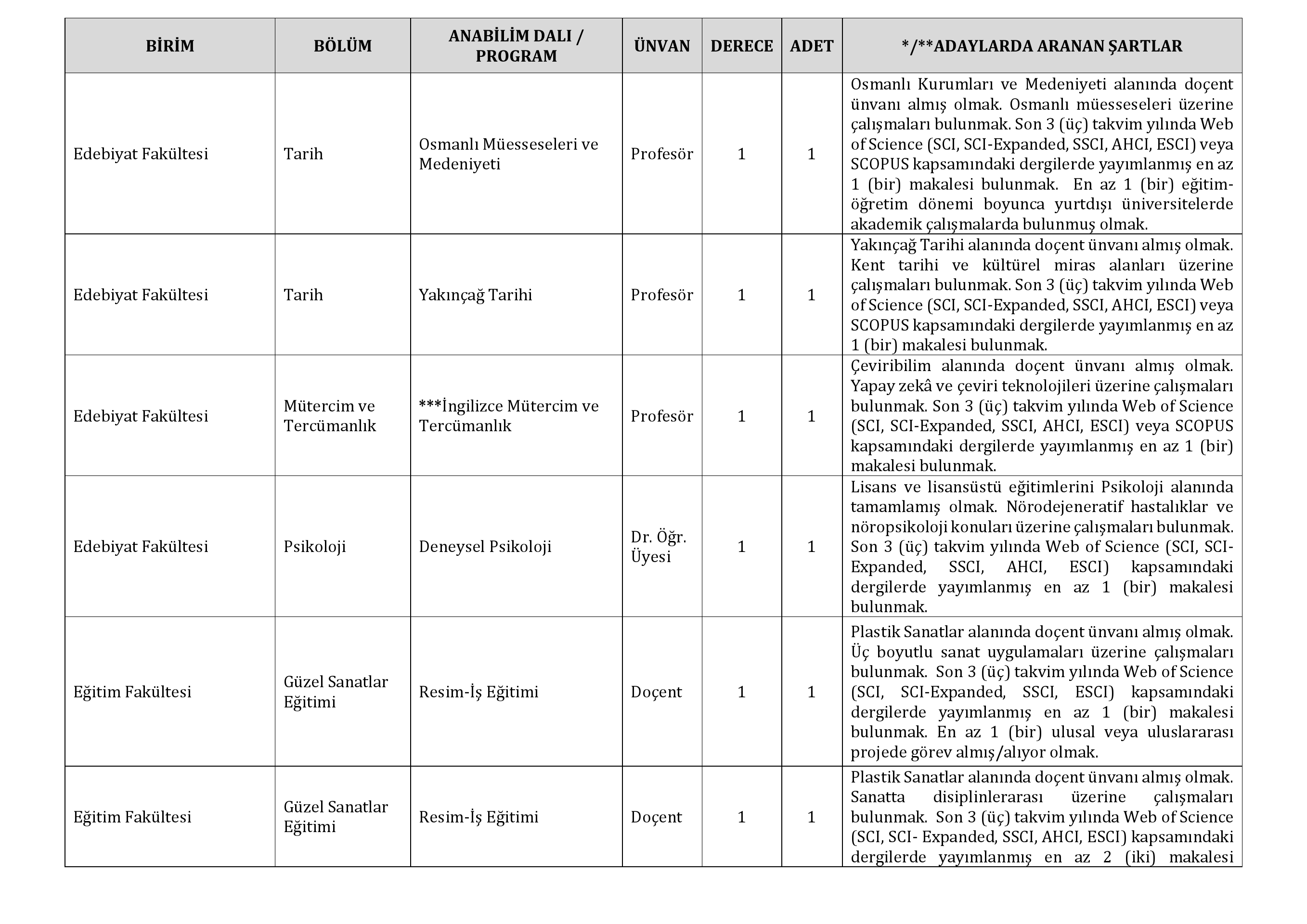 - İlanda belirtilen koşulları taşımayan ve başvuru süresi içinde yapılmayan müracaatlar dikkate alınmayacaktır.