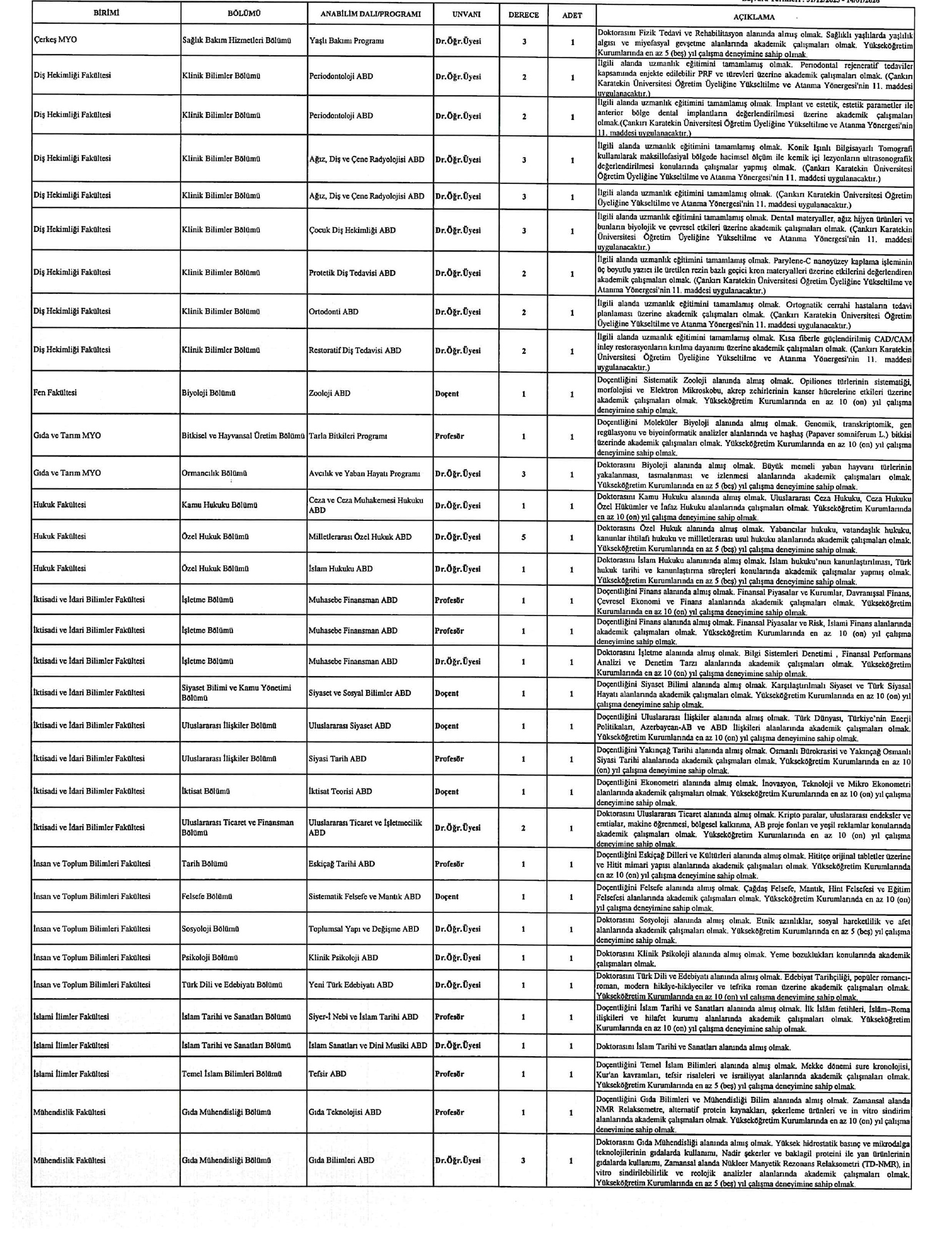 Çankırı Karatekin Üniversitesi Rektörlüğünden;