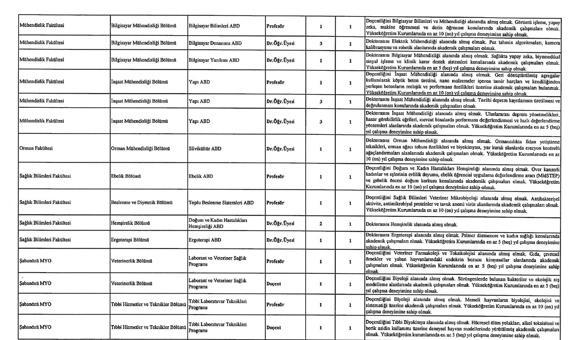 7. Profesör ve Doçent kadrosunda bulunan adaylarlar alt kadrolara müracaat edemezler.
