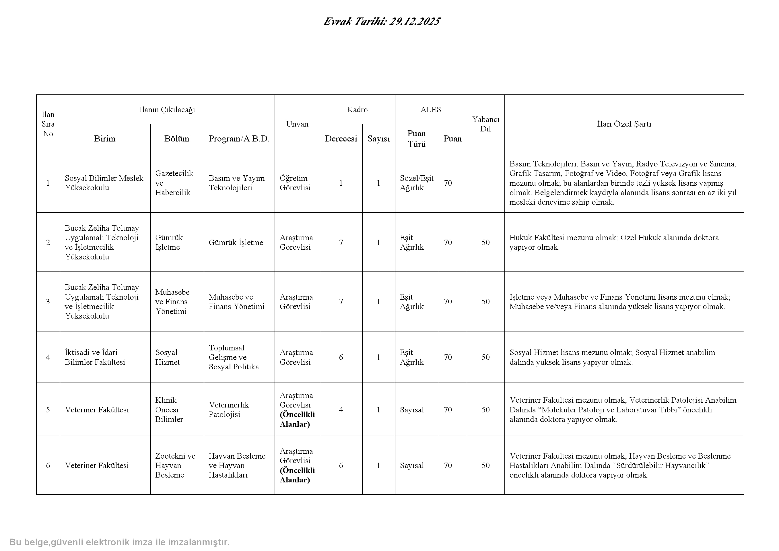 Üniversitemiz birimlerine, 2547 sayılı Kanun'un ilgili maddeleri, 657 sayılı Kanun'un 48. maddesi ile Öğretim Üyesi Dışındaki Öğretim Elemanı Kadrolarına Yapılacak Atamalarda Uygulanacak Merkezi Sınav ile Giriş Sınavlarına İlişkin Usul ve Esaslar Hakkında Yönetmeliğin ilgili hükümleri uyarınca öğretim görevlisi ve araştırma görevlisi alınacaktır.